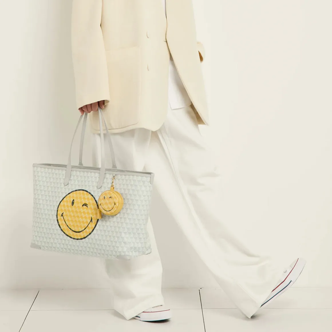 - External features: wink motif, tassel zip closure, EARPHONES embossing on the back, Anya Hindmarch bow