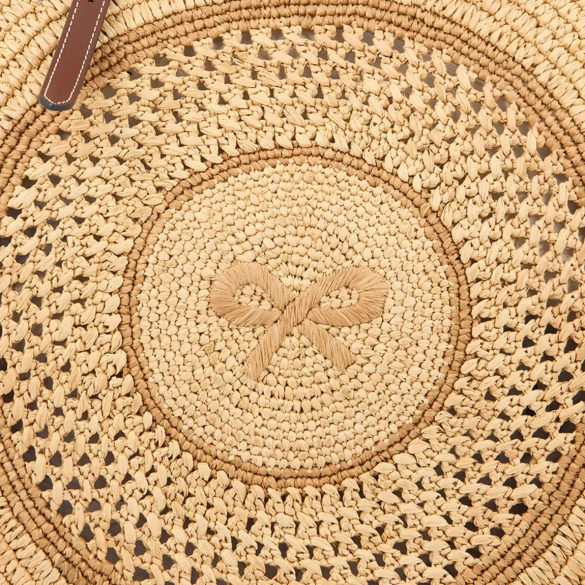 The Round Bow Tote is the perfect size for beach-day essentials, including your phone, sunglasses, sun cream and current book. It’s woven from natural raffia to include our trademark bow, and finished with adjustable leather shoulder straps and a magnetic closure. Keep cards in the slip pocket, inside.