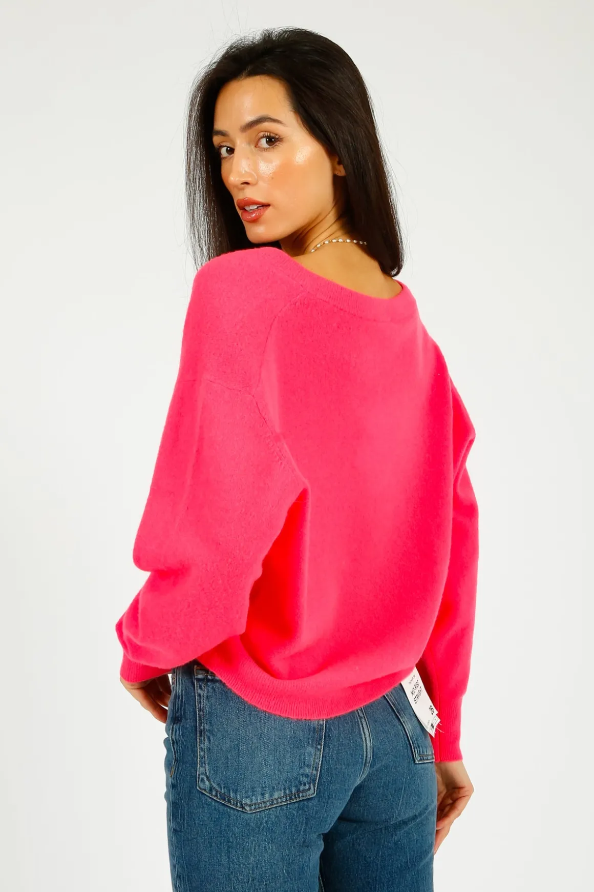 Indulge in comfort and style with the AV Raxow V Neck Knit in Hortensia Fluro. Made with a luxurious blend of wool, polyamide, and cashmere, this long sleeve jumper is both effortless and versatile. Its V-neck adds a touch of elegance, while its easy handwash care makes it a practical choice. Elevate your wardrobe with this must-have piece!