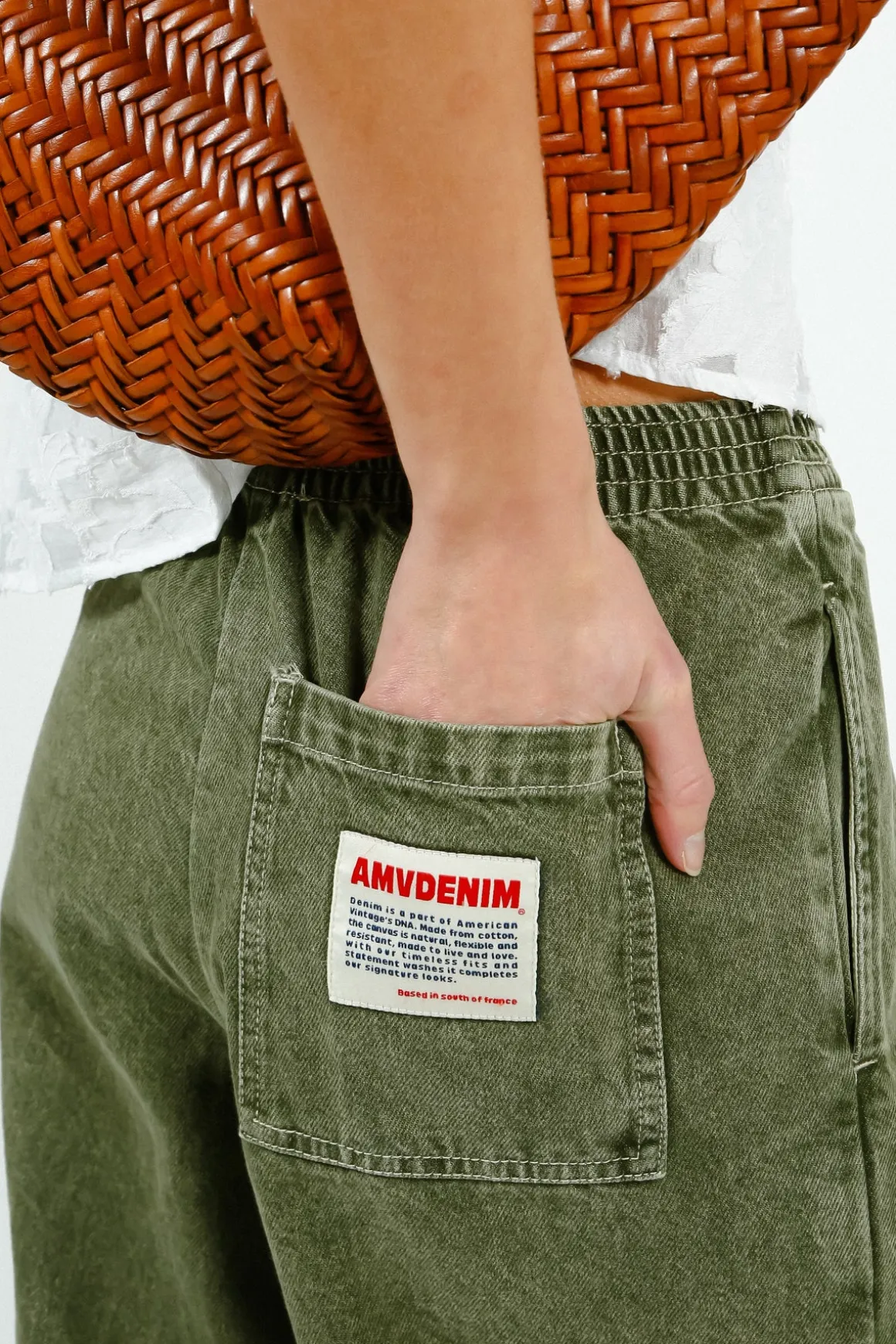 - “AMV Denim” back patch pocket