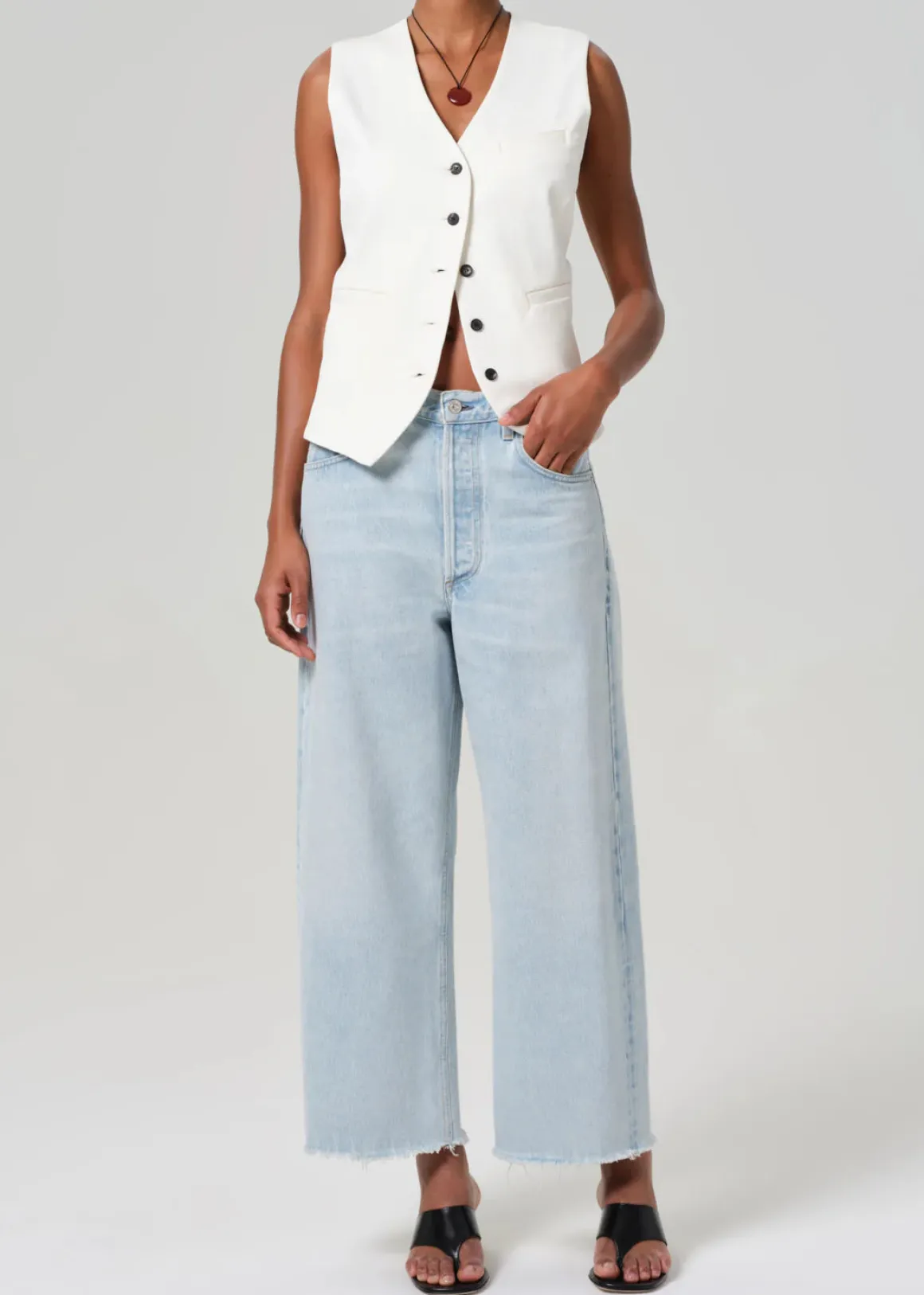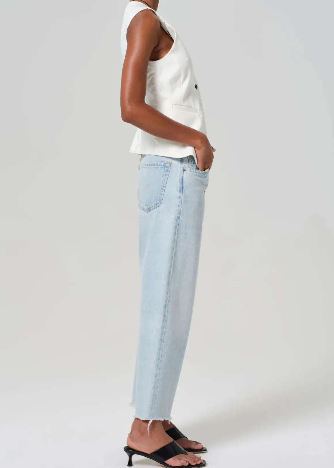The Ayla Raw Hem Crop takes inspiration from a vintage silhouette, offering a relaxed yet flattering top block and a roomy leg with a raw hem finish. Made from 100% regenerative cotton, this cropped denim is not only comfortable but also sustainable, making it a timeless and versatile addition to your wardrobe. Effortlessly style it with a tucked-in blouse and sandals for a relaxed daytime look, or elevate it with a sleek heel and tailored blazer for a chic and polished ensemble.
