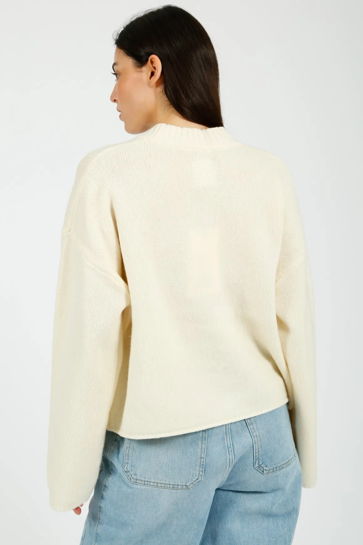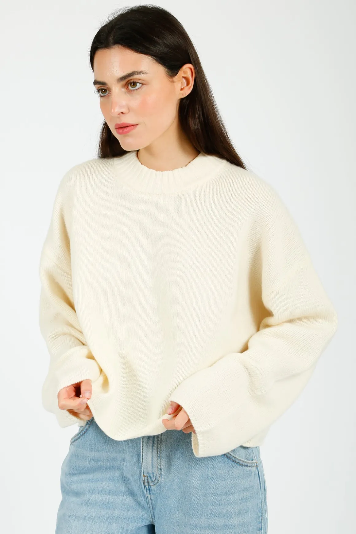 Discover the luxurious comfort of our DAY Felice Soft Lambswool Jumper in Ivory. With its cozy crew neck, natural finish at the hem, and ribbed texture, this must-have jumper offers a loose fit and a stylishly cropped silhouette.