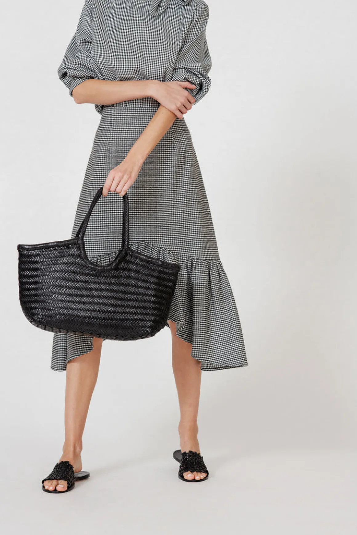 Named after the sunny Massachusetts island, the Nantucket bag is one of our most popular styles. Handwoven in a tight knit from soft buffalo calf leather and complete with braided handles, this roomy, unlined, open-top tote will be the perfect accompaniment to laid-back picnics beneath the summer sun.