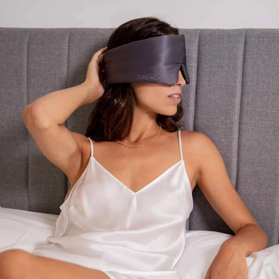 Masterfully crafted by Drowsy for maximum comfy vibes. Wear this luxury grey silk mask for an uninterrupted beauty sleep every night. Provides the ultimate escape for weary eyes.