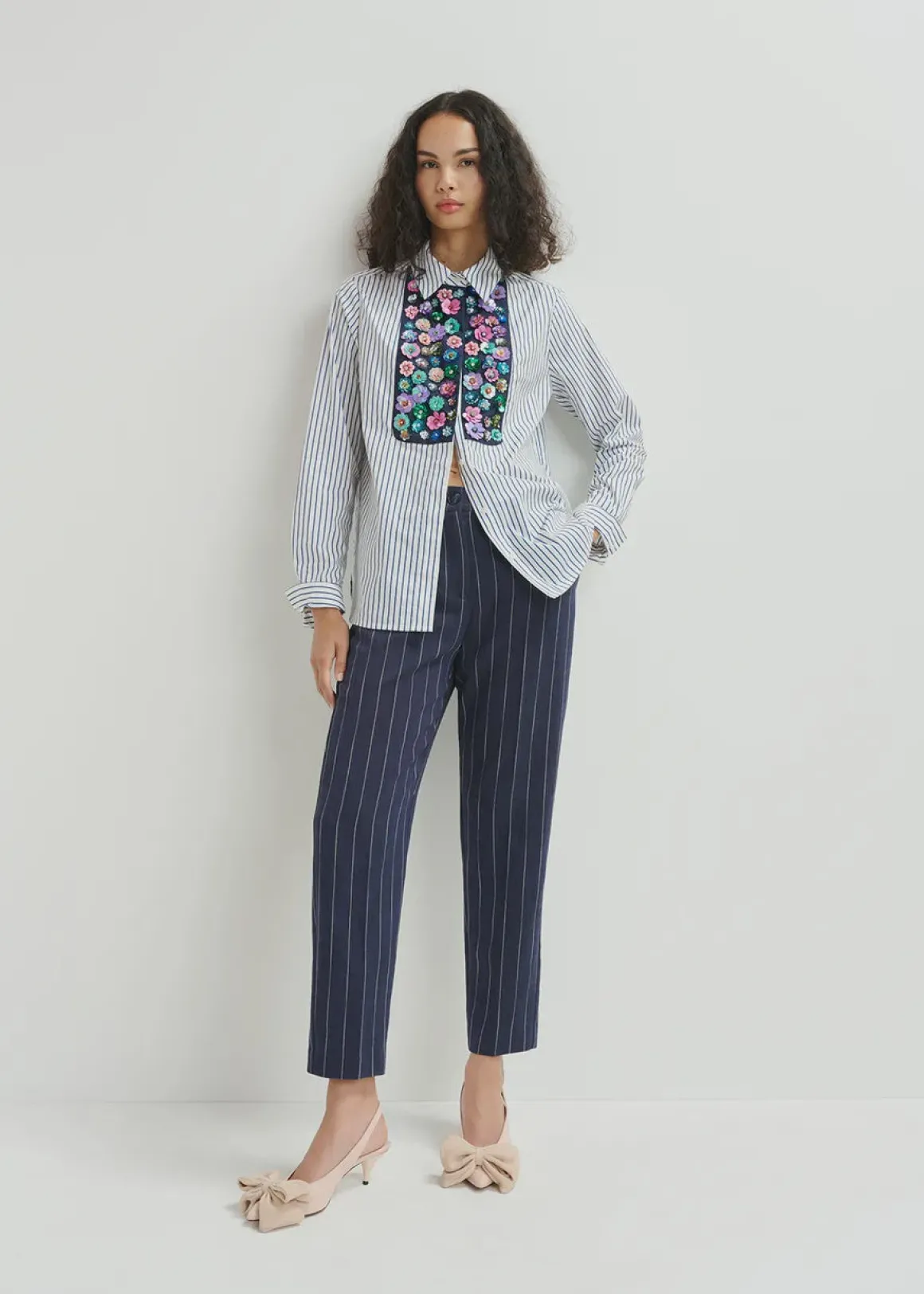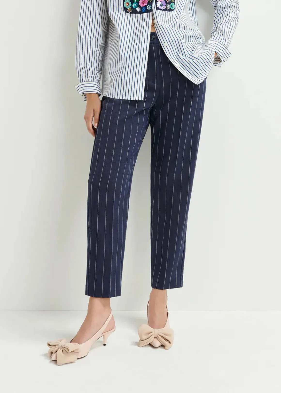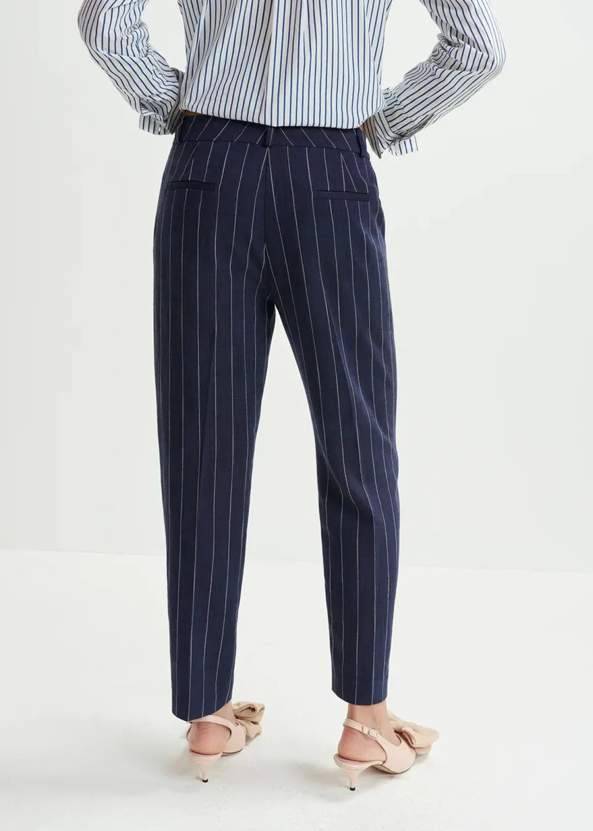 Elevate your fashion game with the EA Host Carotte Leg Pants in Dark Sapphire! Created with a recycled viscose blend, these pants offer a flattering and comfortable fit with a tapered leg and cropped length. Featuring a zip and button fastening, slanted pockets, and belt loops, they’re both fashionable and functional. Upgrade your style game with these creased pants.