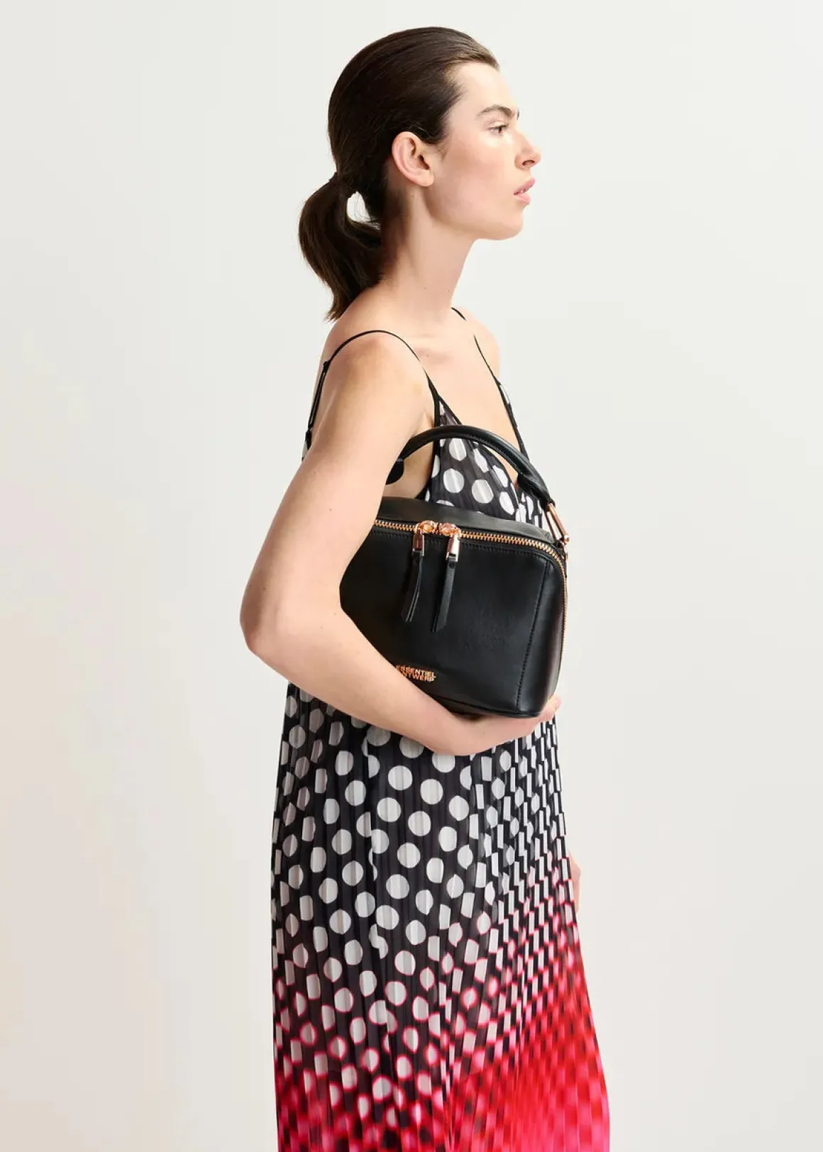 Made from recycled polyester, this midi dress boasts a polka dot print with a hint of tie-dye. The pleated design adds fluidity to your every movement. Customize the fit with adjustable thin shoulder straps.