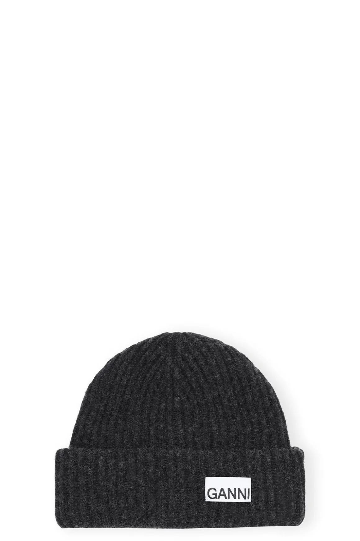 This Oversized Wool Rib Knit Beanie is made from a blend of recycled wool and features a GANNI logo.