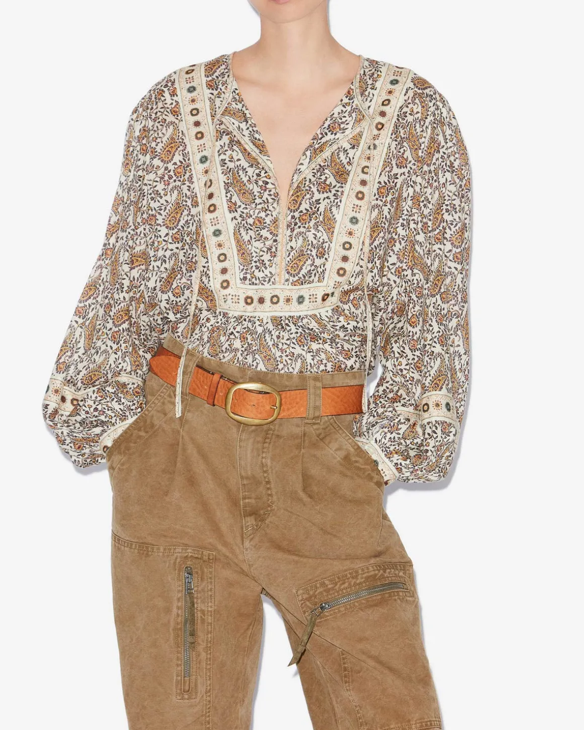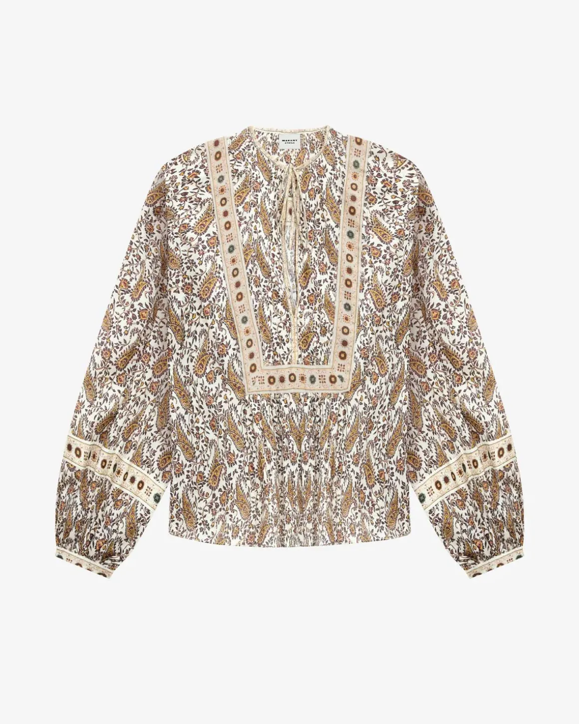 Indulge in effortless elegance with the IM Gayle Blouse in Ecru. Crafted from printed and gathered cotton voile, this blouse features a round neckline with string, a front slit, and gathered front and shoulders. With long gathered sleeves, tapered buttoned cuffs, and a loose fit, this blouse is perfect for any occasion.