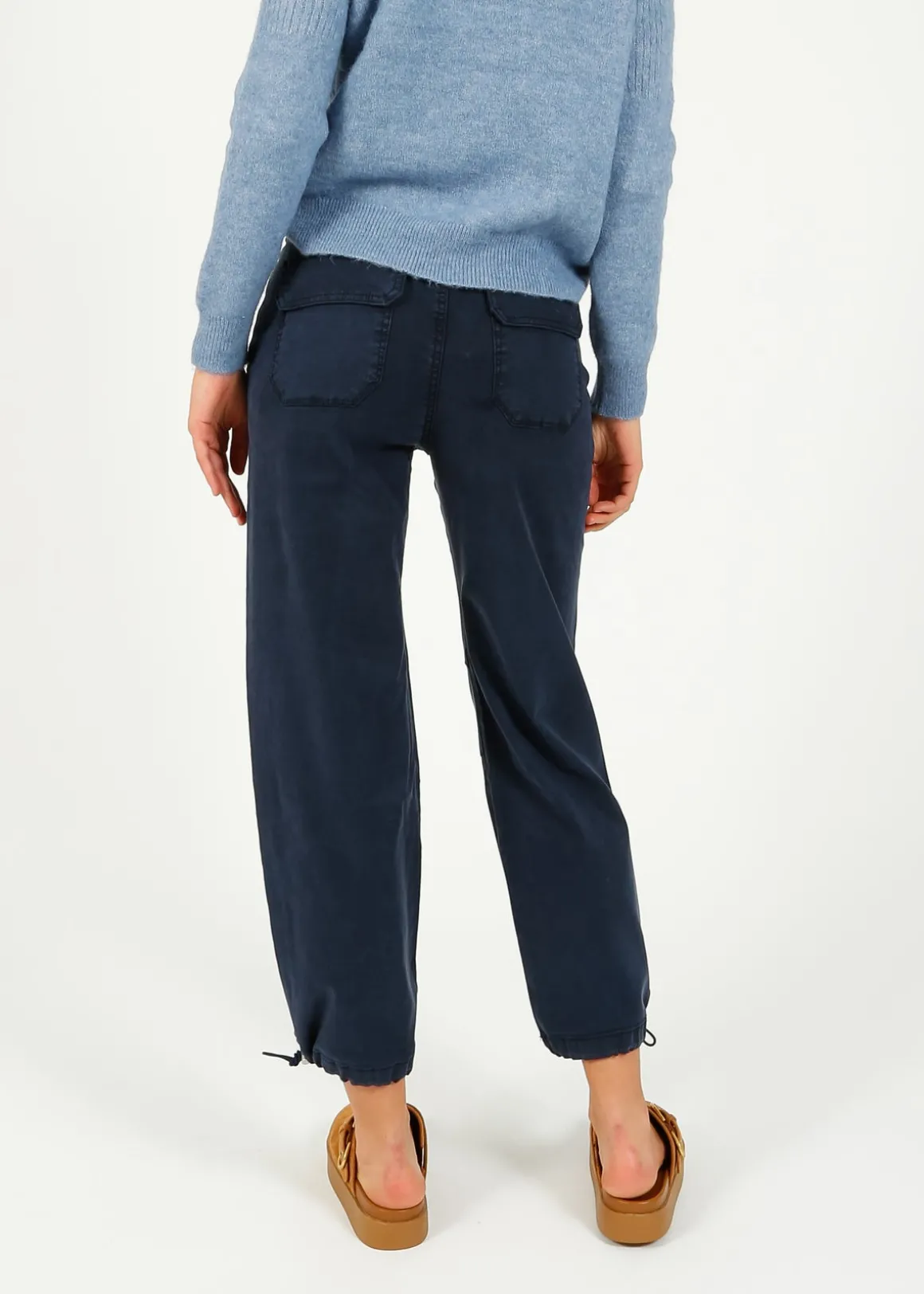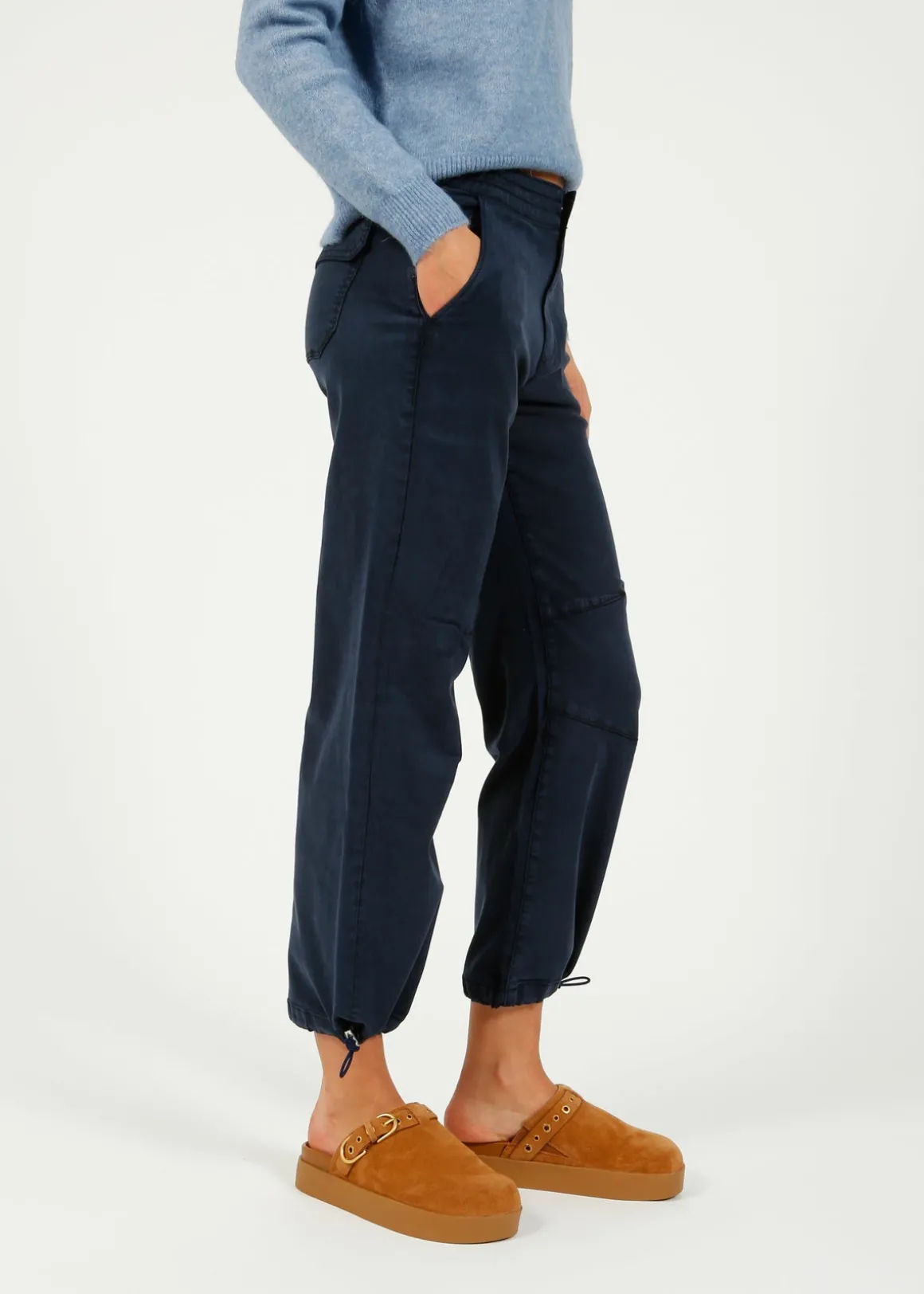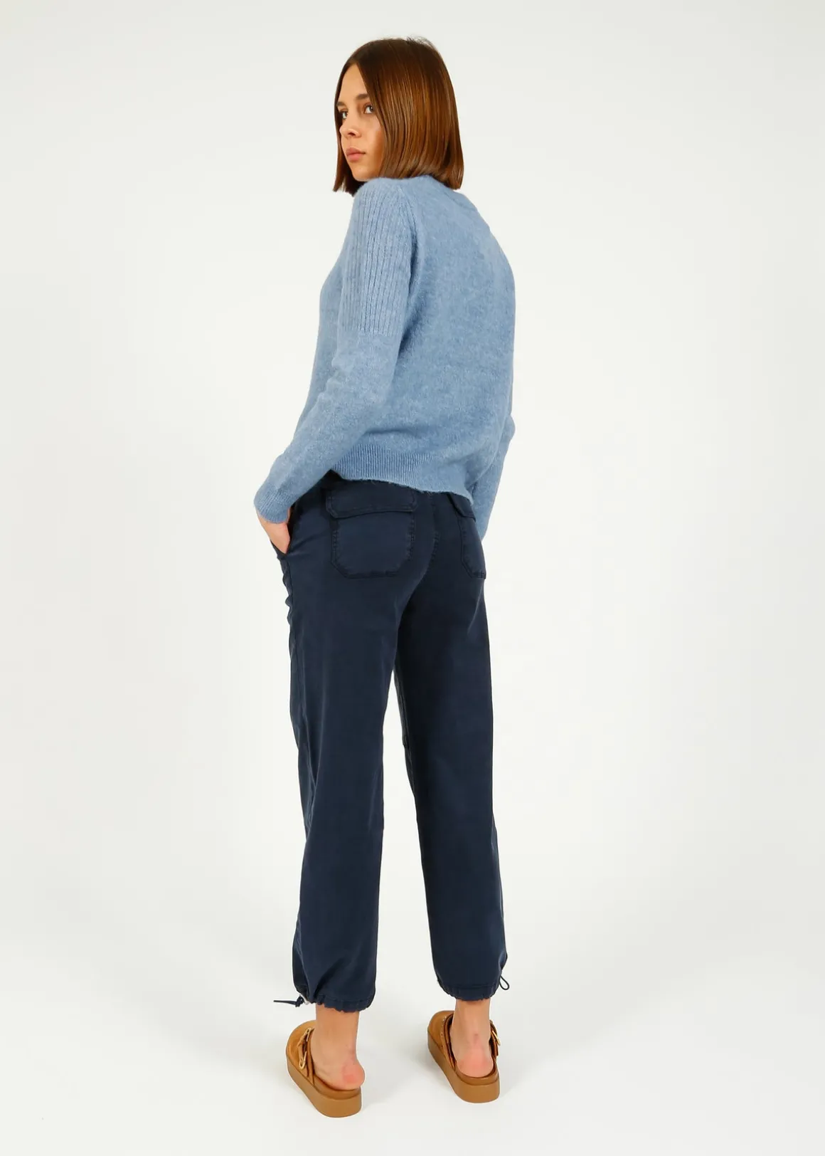 Indulge in a denim hiatus with the vintage navy blue Reid Jogger. With its elasticated ankle cinching, back flap pockets, and knee darts, Reid boasts tactical style. Crafted from a super soft stretch fabric, this high-rise pant offers an effortlessly cool and comfortable fit.