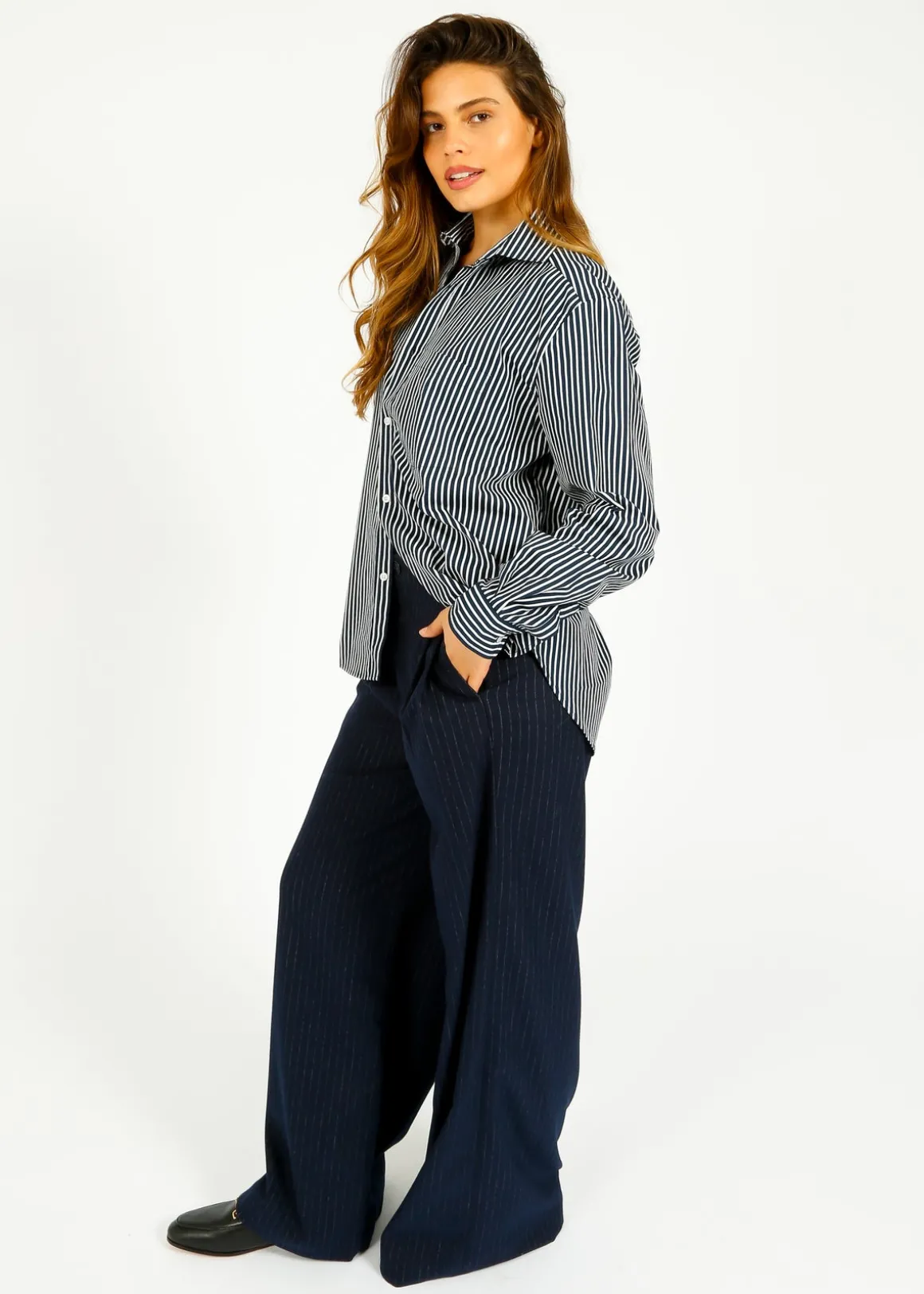 - Navy and white pinstripe