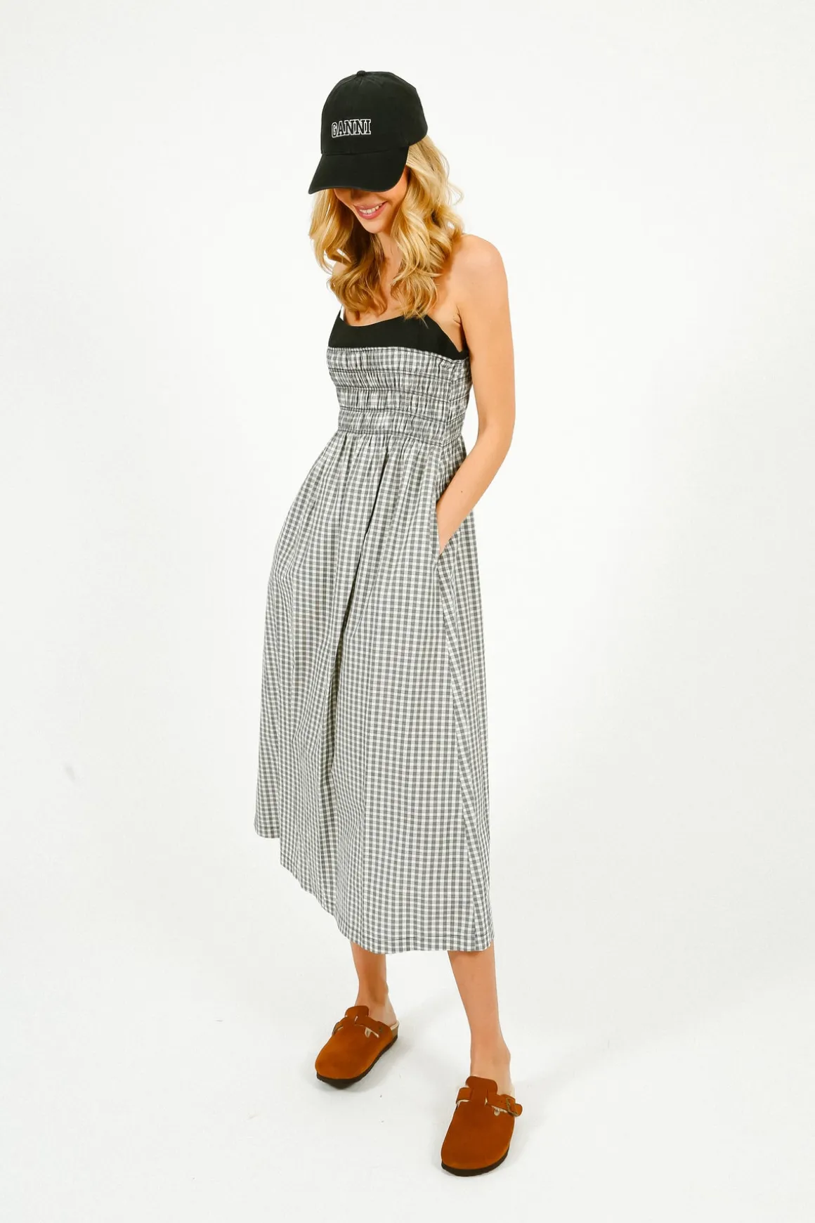 Inspired by French screen sirens, the Primrose features a shirred bodice with a midi-length skirt. Crafted from a heavy cotton poplin, this is a lightweight, ultra-breathable style.