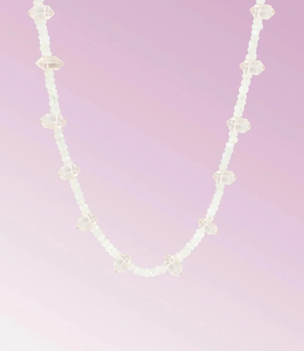 This pair are soulmates: moonstone beads and rose quartz points mean this necklace is buzzing with love vibrations. All you need is love