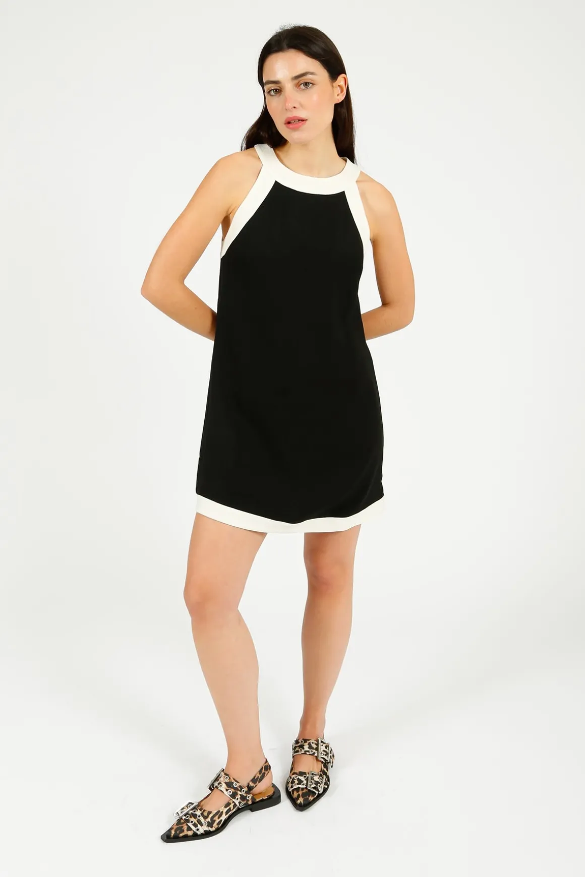 This Bryson mini dress is made from bouclé for a fuzzy, textured finish. Inspired by A-line shift dresses from the sixties, it has a monochrome colourway that matches Rixo’s Selita jacket.