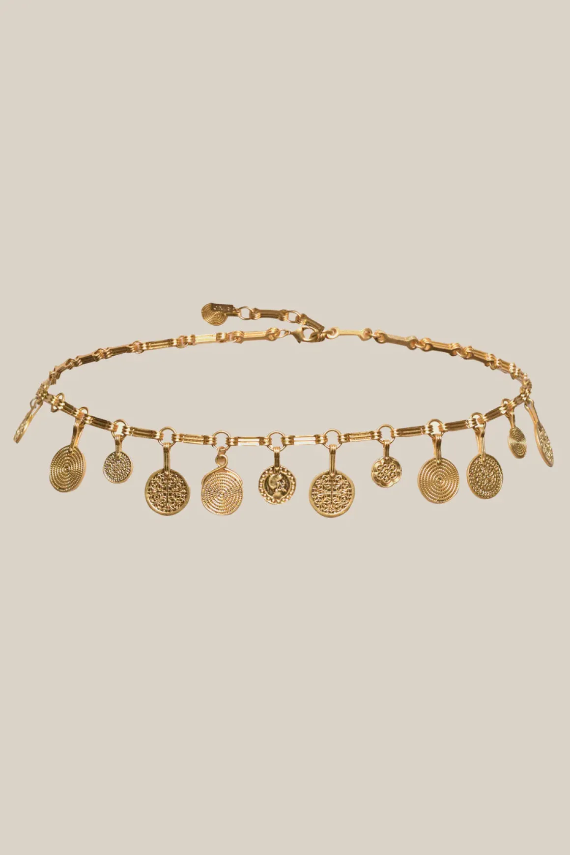 Add a touch of luxury to your wardrobe with the RIXO Isolde Belt in Gold. Crafted from 18-karat gold plated zinc, this belt features a secure lobster clasp fastening and an adjustable length for the perfect fit. Plus, it’s nickel-free, making it both stylish and skin-friendly. Elevate any outfit with this statement accessory.