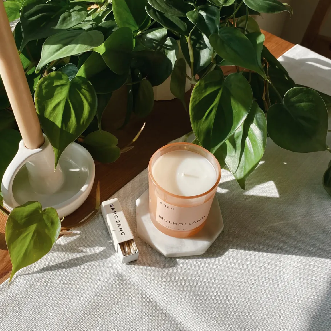 - Roen candles are hand-poured in their Southern California studio using a coconut + soy wax blend for a natural, clean burn. They use lead-free cotton wicks and premium fragrance oils. All of Roen’s candles are vegan, cruelty-free, phthalate-free, paraben-free, carcinogen-free and packaged in fully recyclable materials.