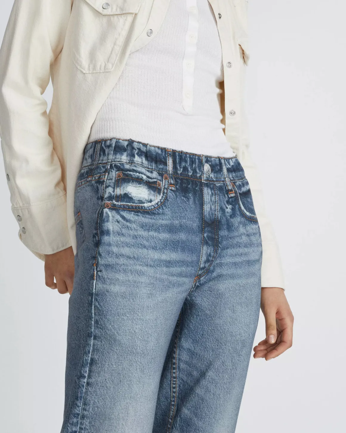 - High-stretch, light indigo print