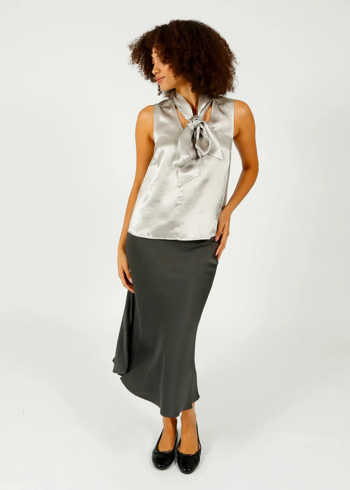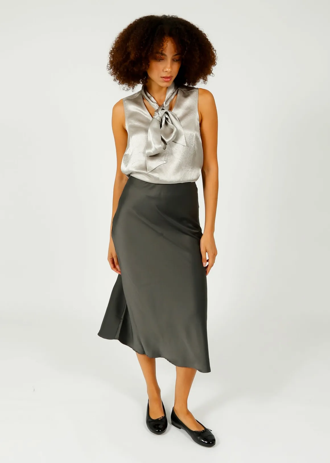 Indulge in the luxurious satin of this midi skirt for endless styling possibilities, perfect for any occasion – from casual to formal.