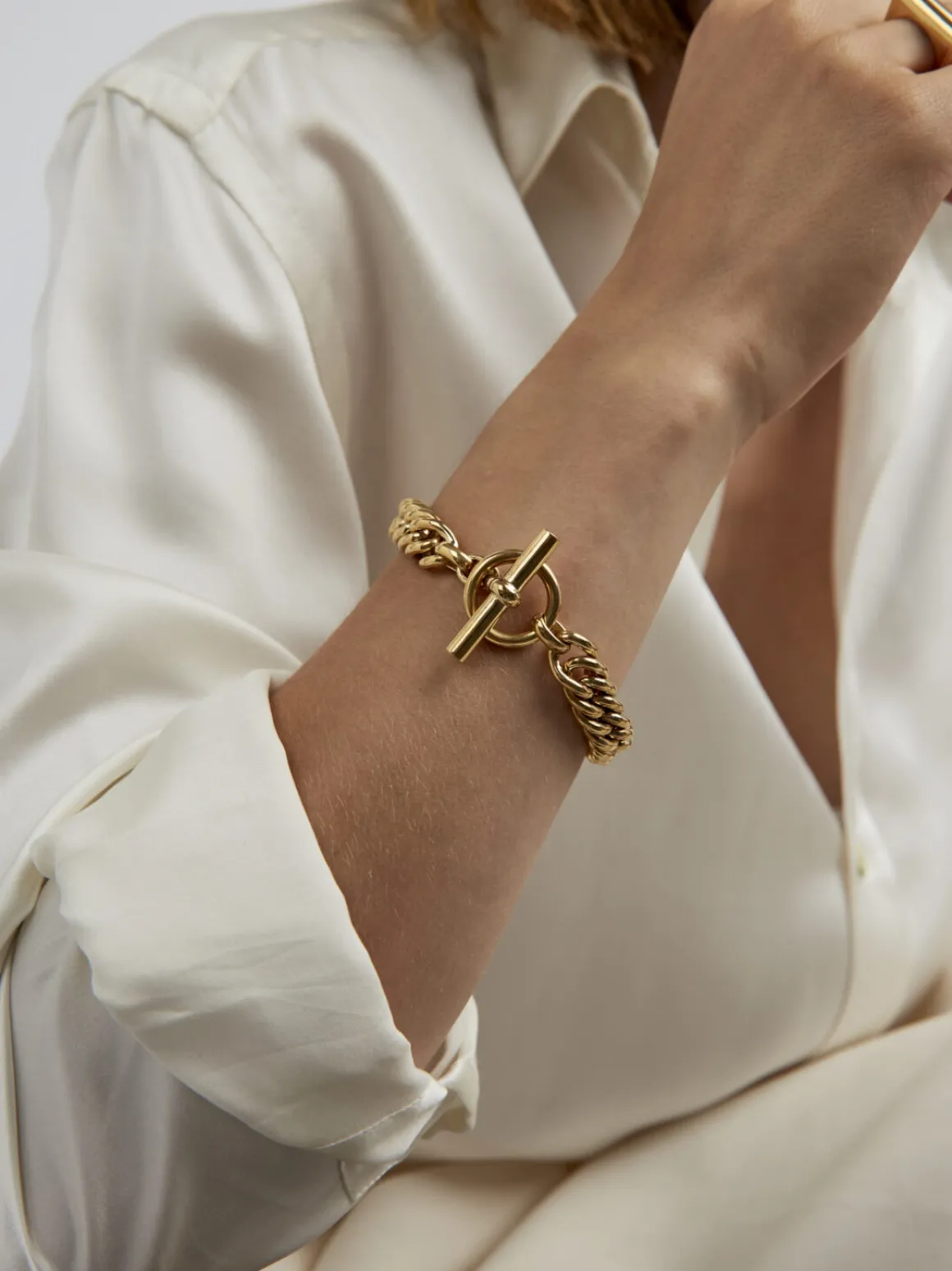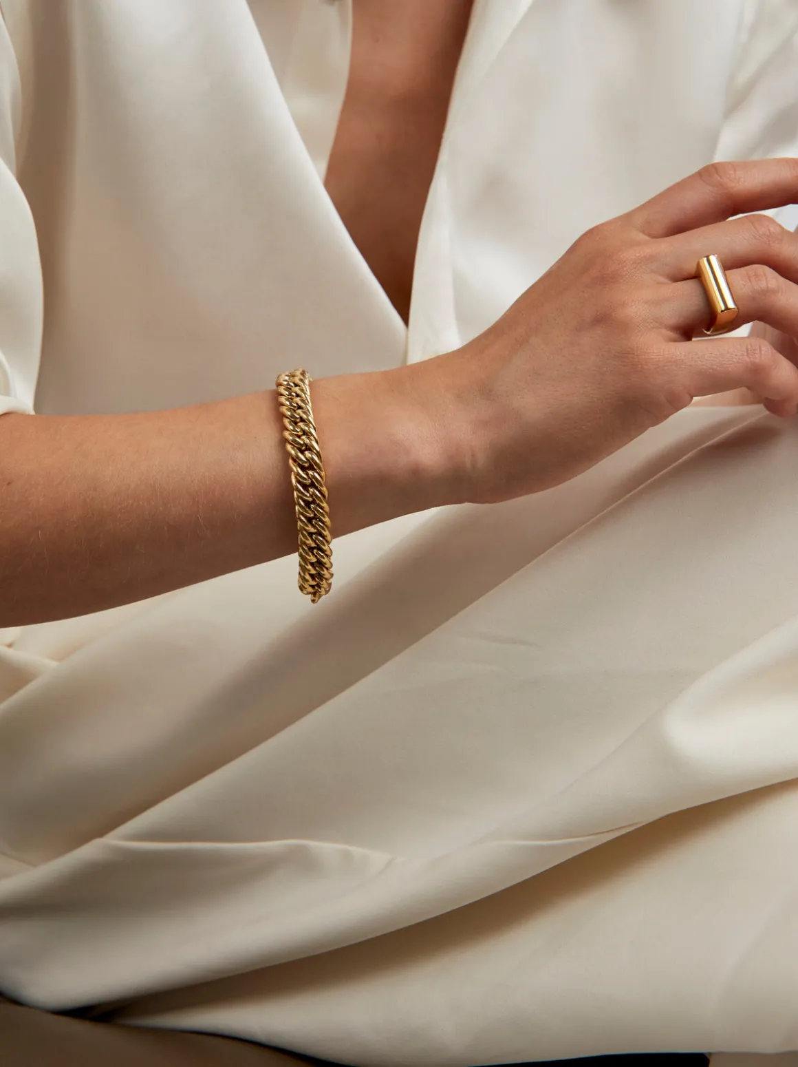 Experience the latest trend with this stunning accessory. Embrace the allure of chunky gold chains and elevate your style with this perfect bracelet.