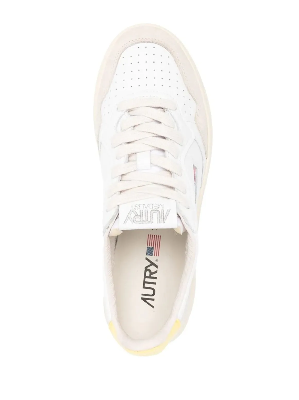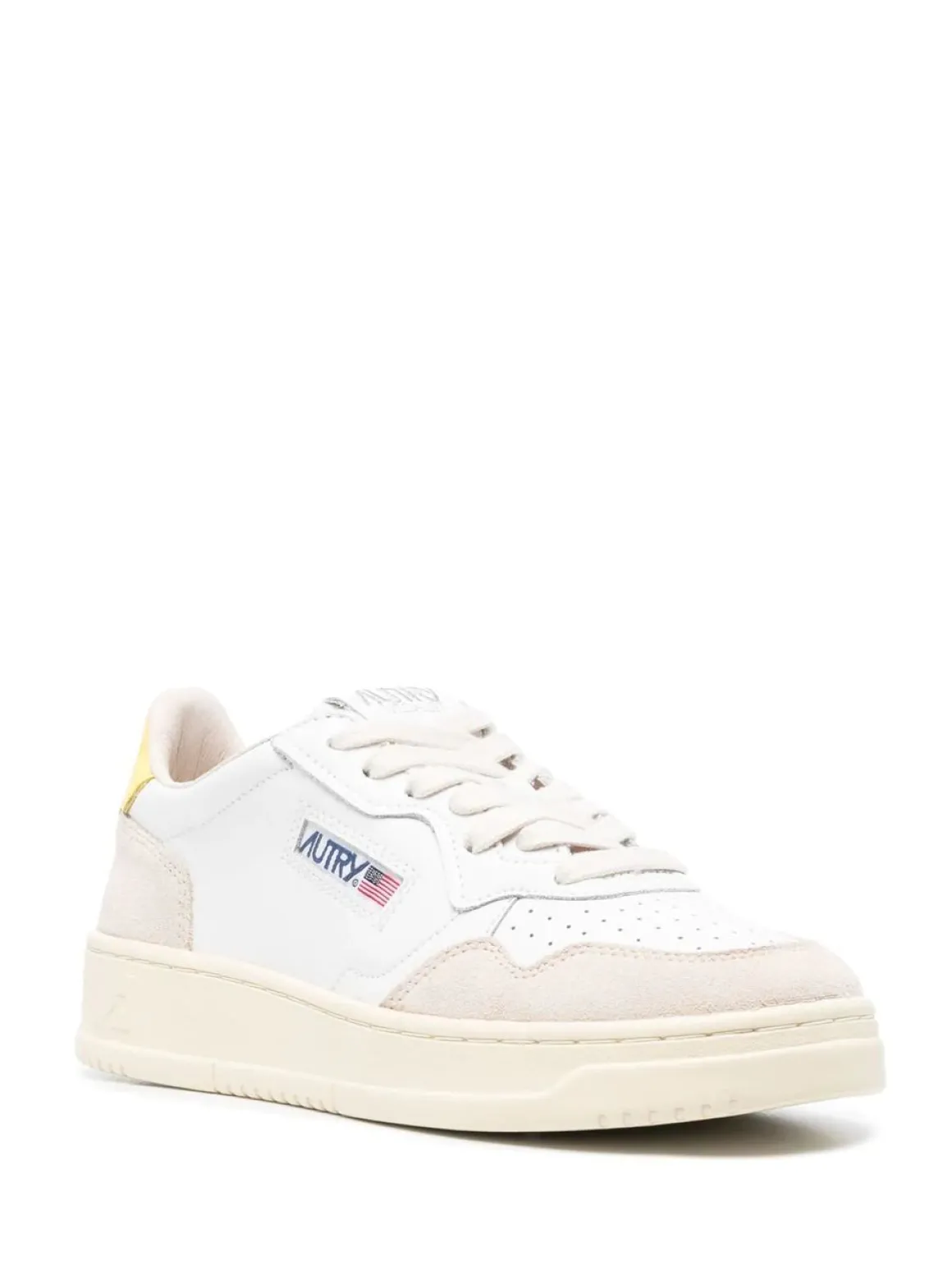 - Upper in white and lemongrass leather and suede.