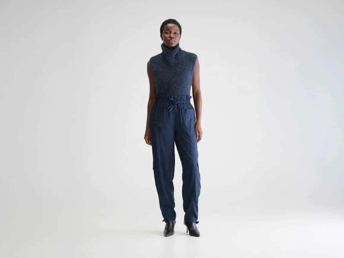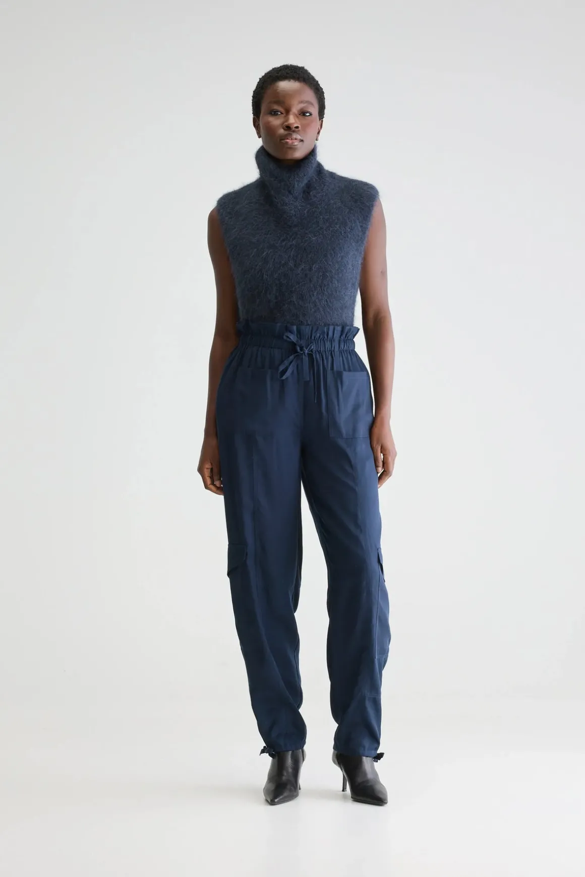 Experience the ultimate combination of comfort and functionality with our BR Kiss Pants in Captain. These classic cargo-style trousers feature a pull-cord waist and extra pockets on the legs, all crafted from breathable and flexible dark blue Lyocell fabric.