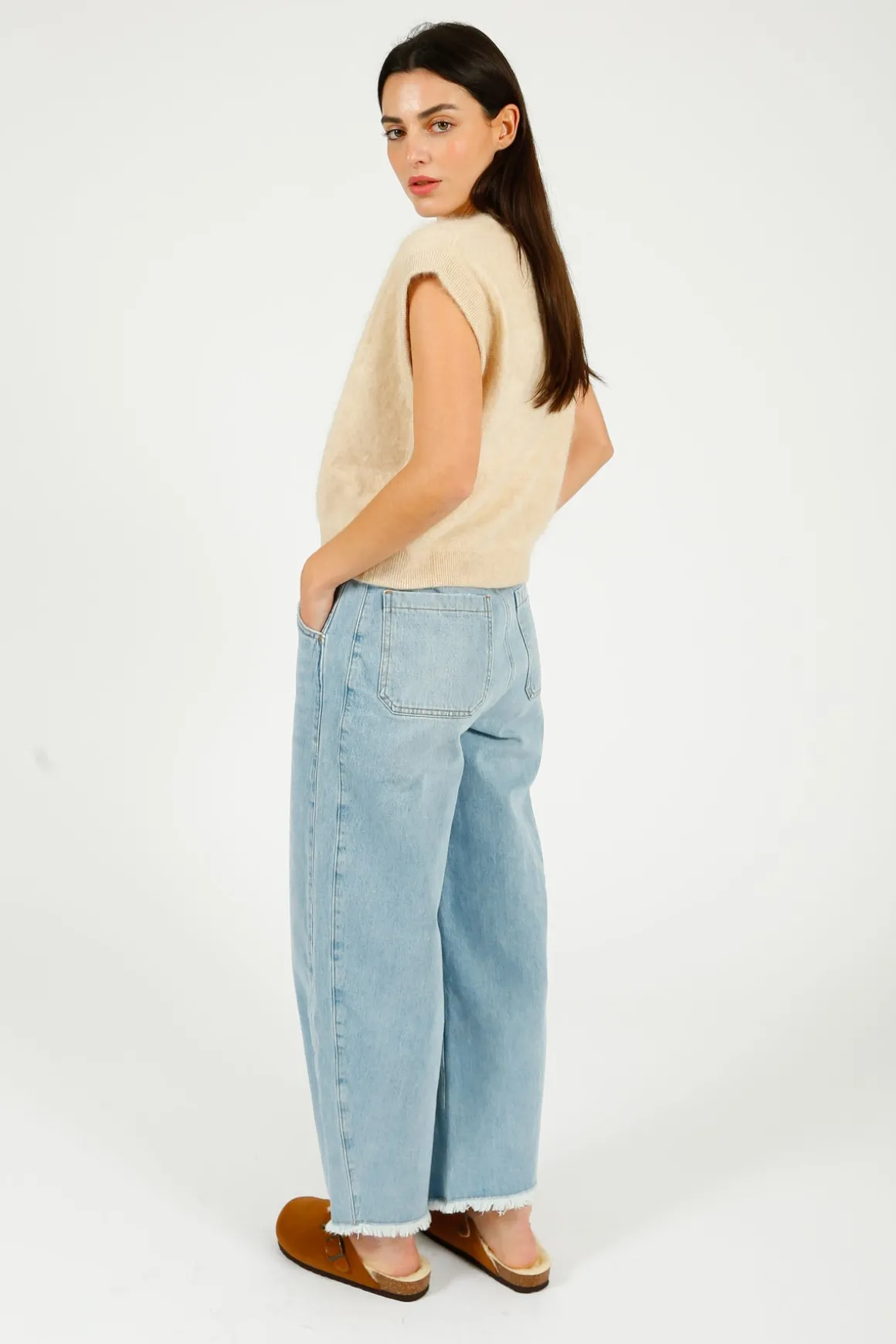 Indulge in luxury with the C-RUSH Brushed Palm Cardi in Almond. Made of 100% cashmere, this sleeveless cardigan is perfect for any season. Gentle care is required and it is recommended to dry clean only. Elevate your wardrobe and feel the softness of cashmere against your skin.