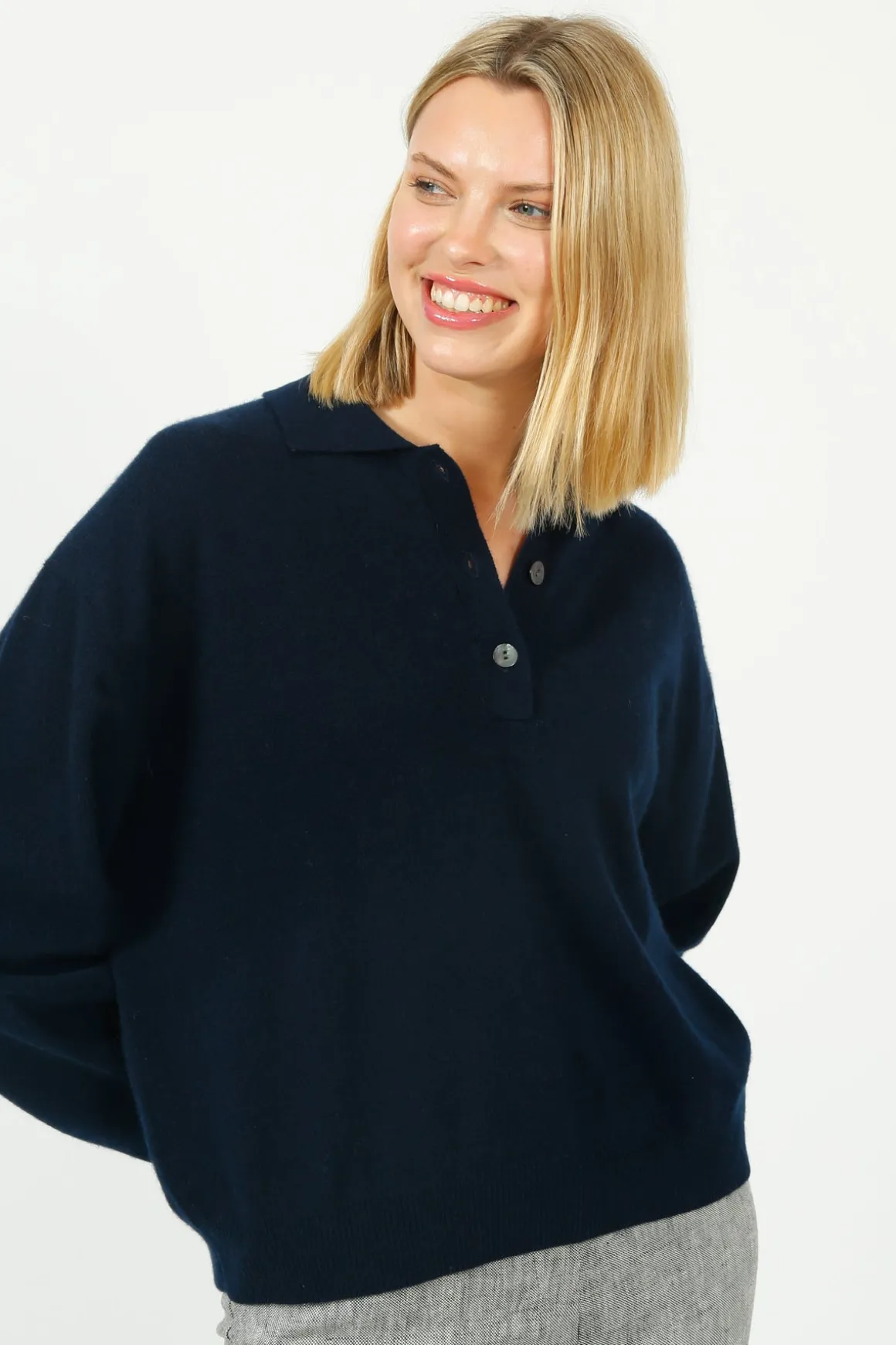 Indulge in luxury with our Colorush Malibu Polo in Navy. Made with 100% cashmere, this polo features a classic collar and relaxed fit for ultimate comfort. The 3 button v-neck and ribbed trims add a touch of sophistication. Machine washable for easy care. Feel the difference with Colorush!