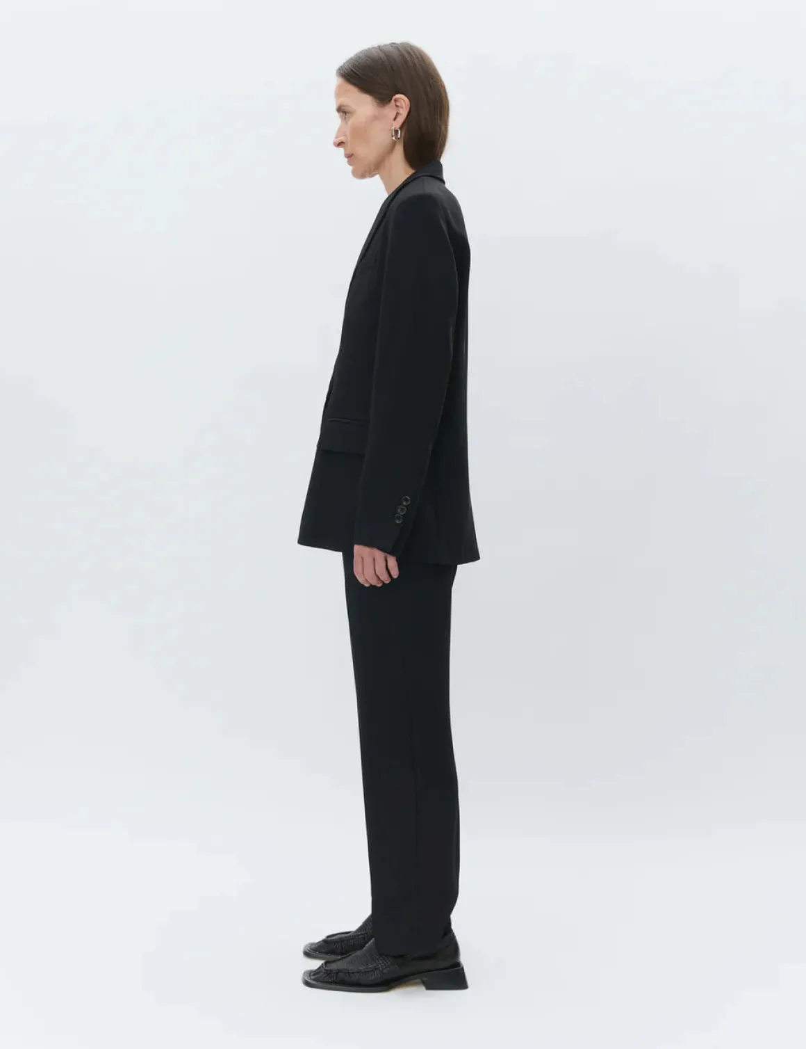 - single button closure, patch pockets in the front, and pockets at the chest and interior