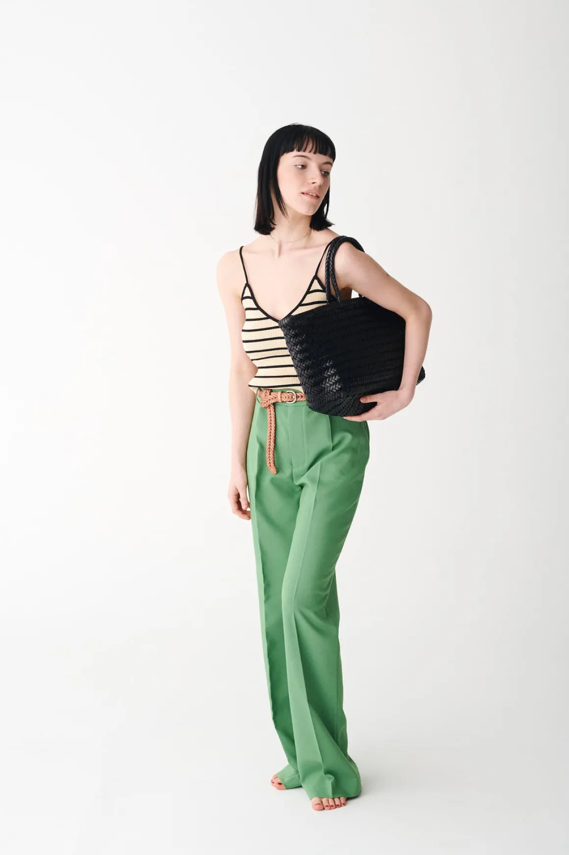 This is the bigger version of Dragon Diffusion’s iconic, best-selling bag—a roomy, hand-woven basket in smooth, buffalo calf leather. Handcrafted by our artisan weavers in one piece, the diagonal chevron weave is what makes this style unique. And, remaining true to traditional basket weaving techniques, the bag comes unlined with an open top. Ideal for your next beach outing or a trip to your local market.