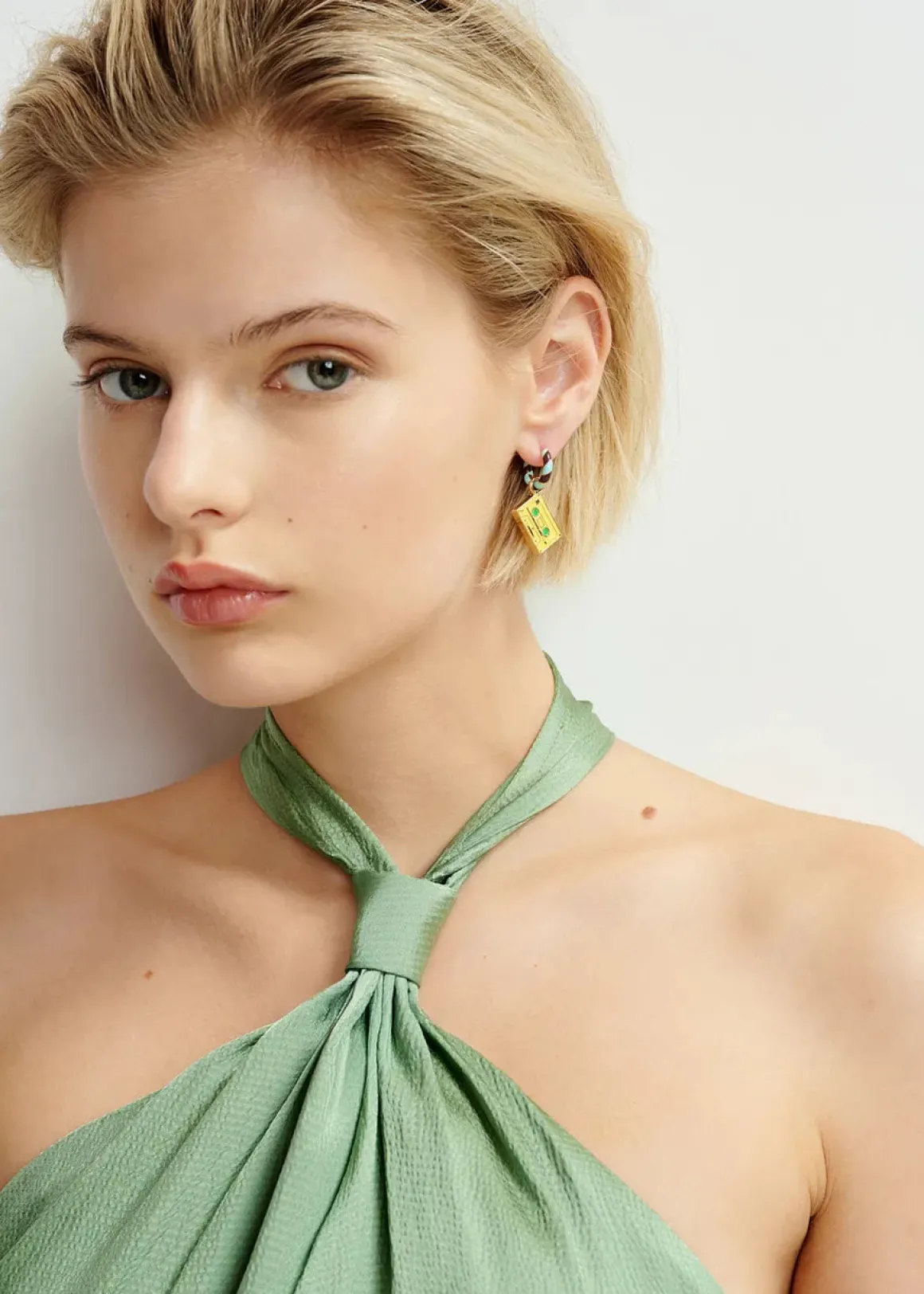 Experience the charm and beauty of the EA Harris Ladybug, Cassette Charm Earrings! One hoop boasts a rhinestone-encrusted enamel ladybug, while the other features an enamel tape-shaped pendant. Don’t let these earrings go unnoticed in your outfit choice.