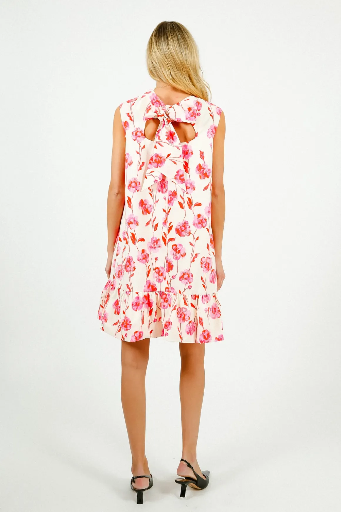 This mini dress is made from recycled polyester and features a beautiful open-back detail that is perfectly tied with a self-fabric bow. Its charming ruffle hem adds to its feminine and flowy silhouette, while convenient slit pockets offer practicality. Fully lined for all-day comfort, this dress is a must-have for an elegant and effortless look for any event.