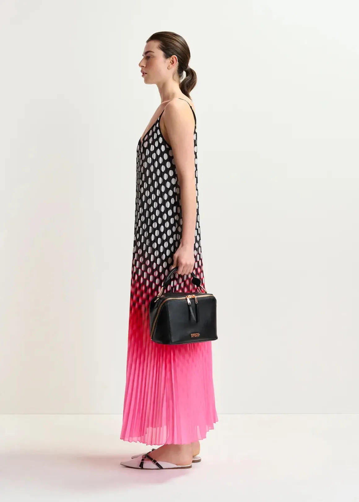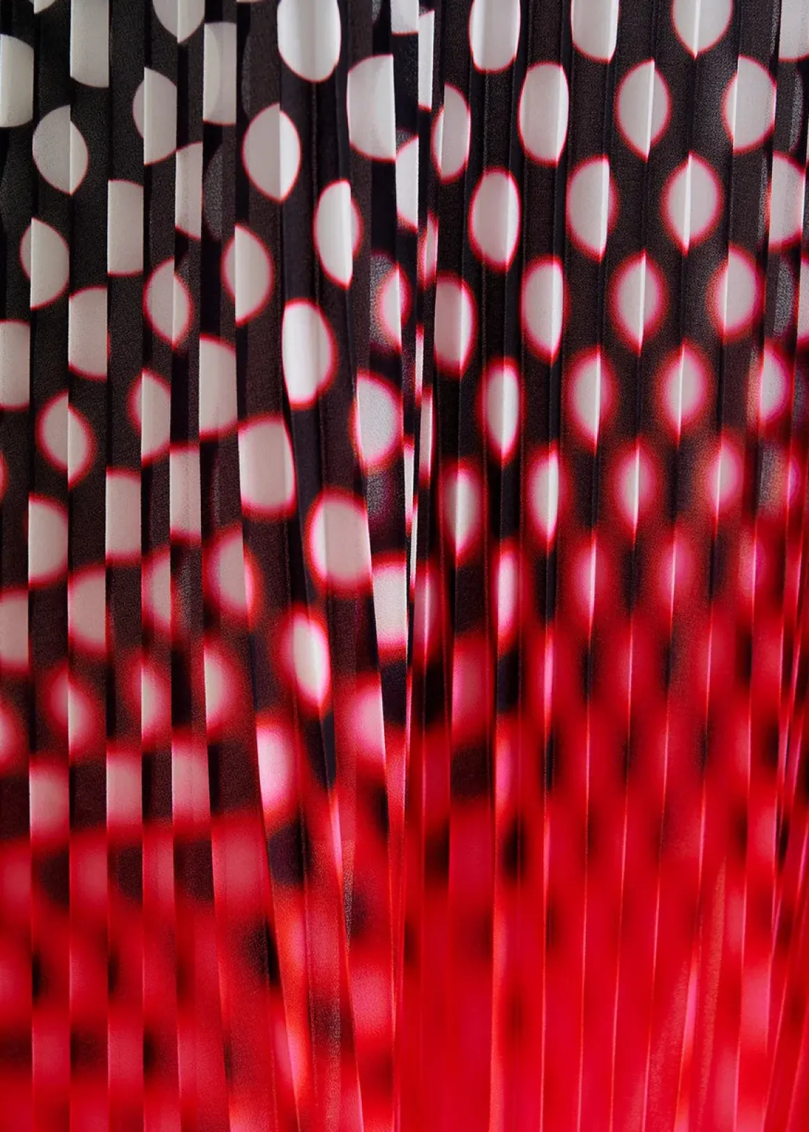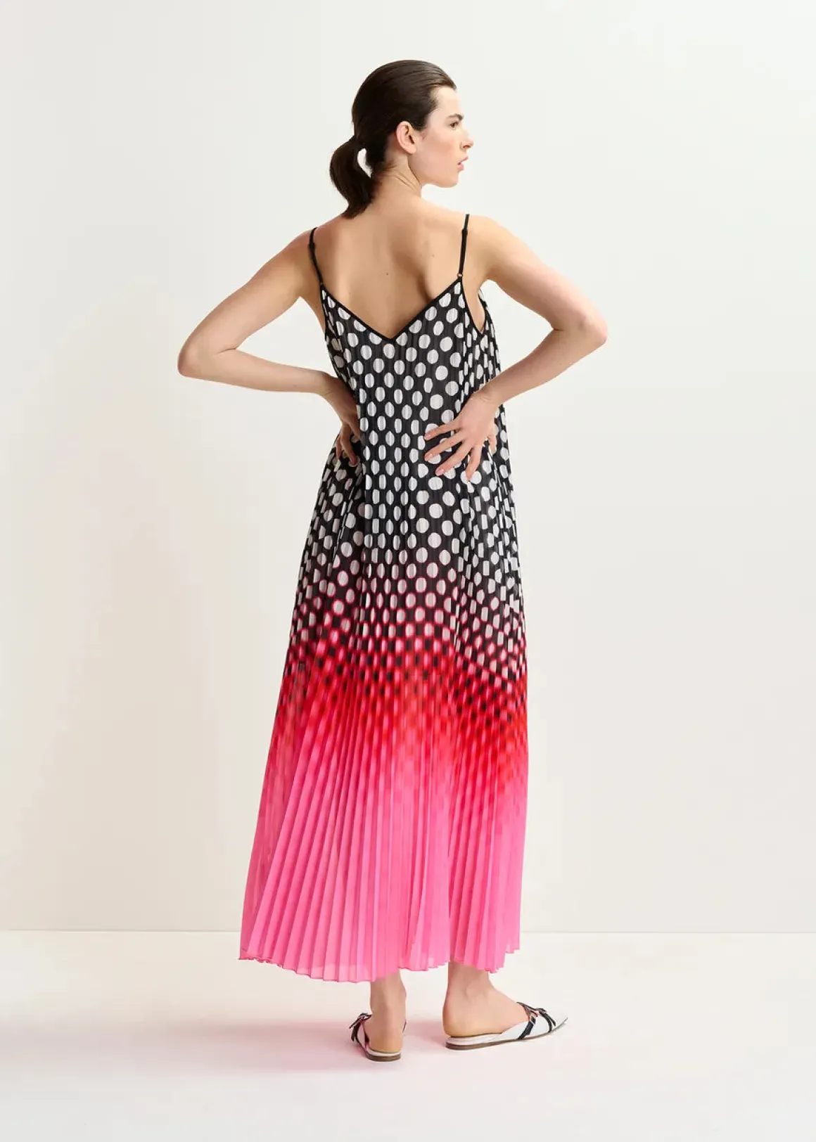 Made from recycled polyester, this midi dress boasts a polka dot print with a hint of tie-dye. The pleated design adds fluidity to your every movement. Customize the fit with adjustable thin shoulder straps.