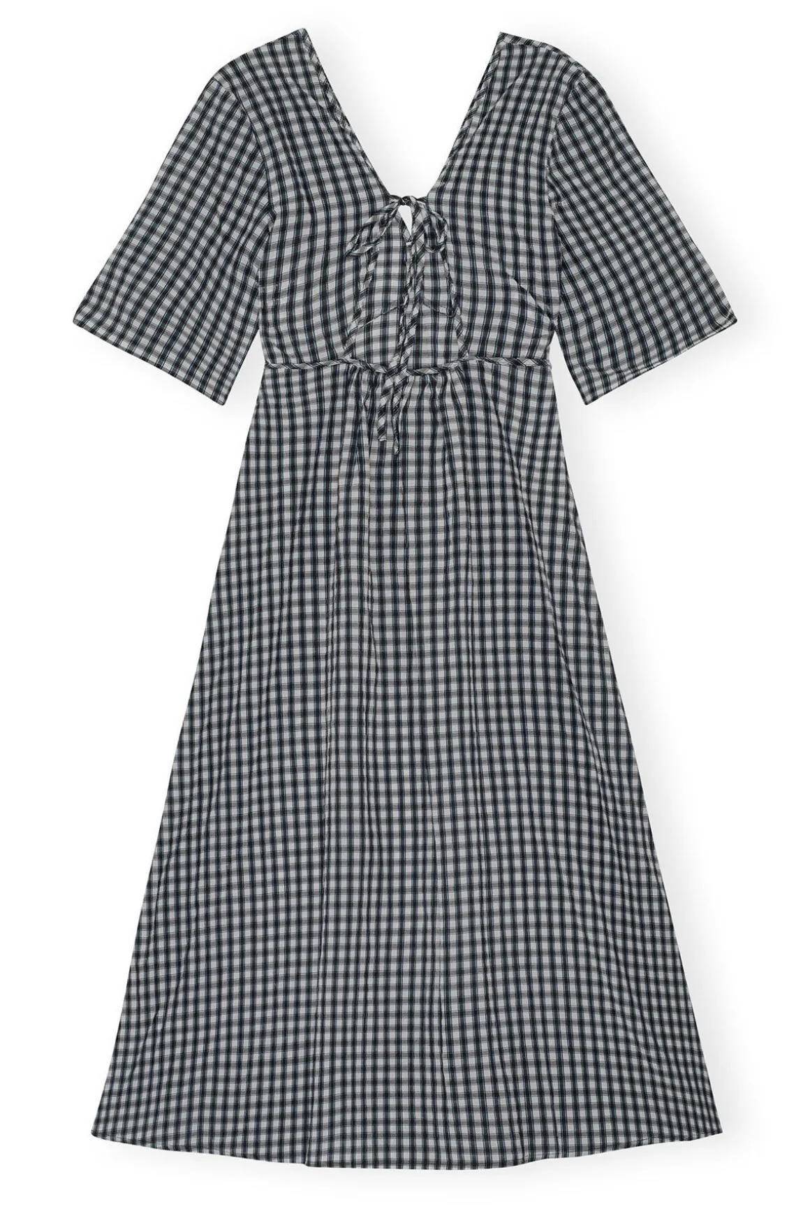 This Seersucker Check V-neck Long Dress features a v-neckline and elbow-length sleeves. Get ready to turn heads in this stunning Seersucker Check V-neck dress! With a flattering v-neckline and elbow-length sleeves, it’s the perfect combination of fashion and comfort. You’ll feel bold and confident with every step you take in this must-have dress. Don’t miss out on this unique and stylish addition to your wardrobe!