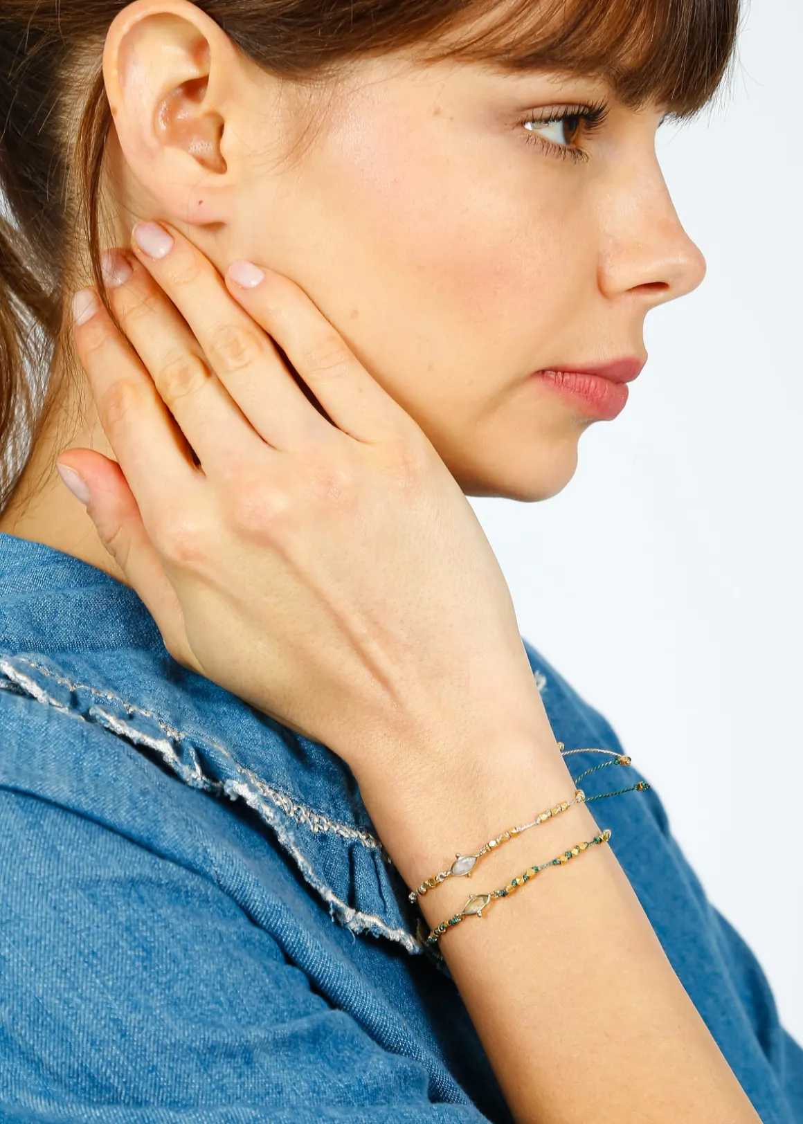 This stylish green design adds a bit of colour pop to any wrist – it looks fab on its own and even better layered with other tonal bracelets from the collection.