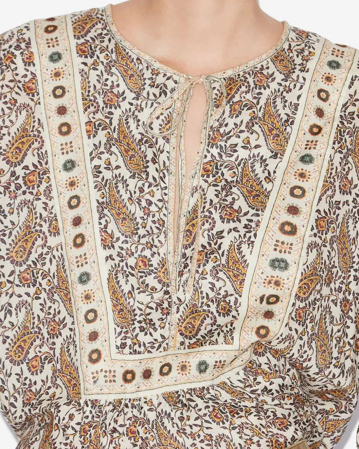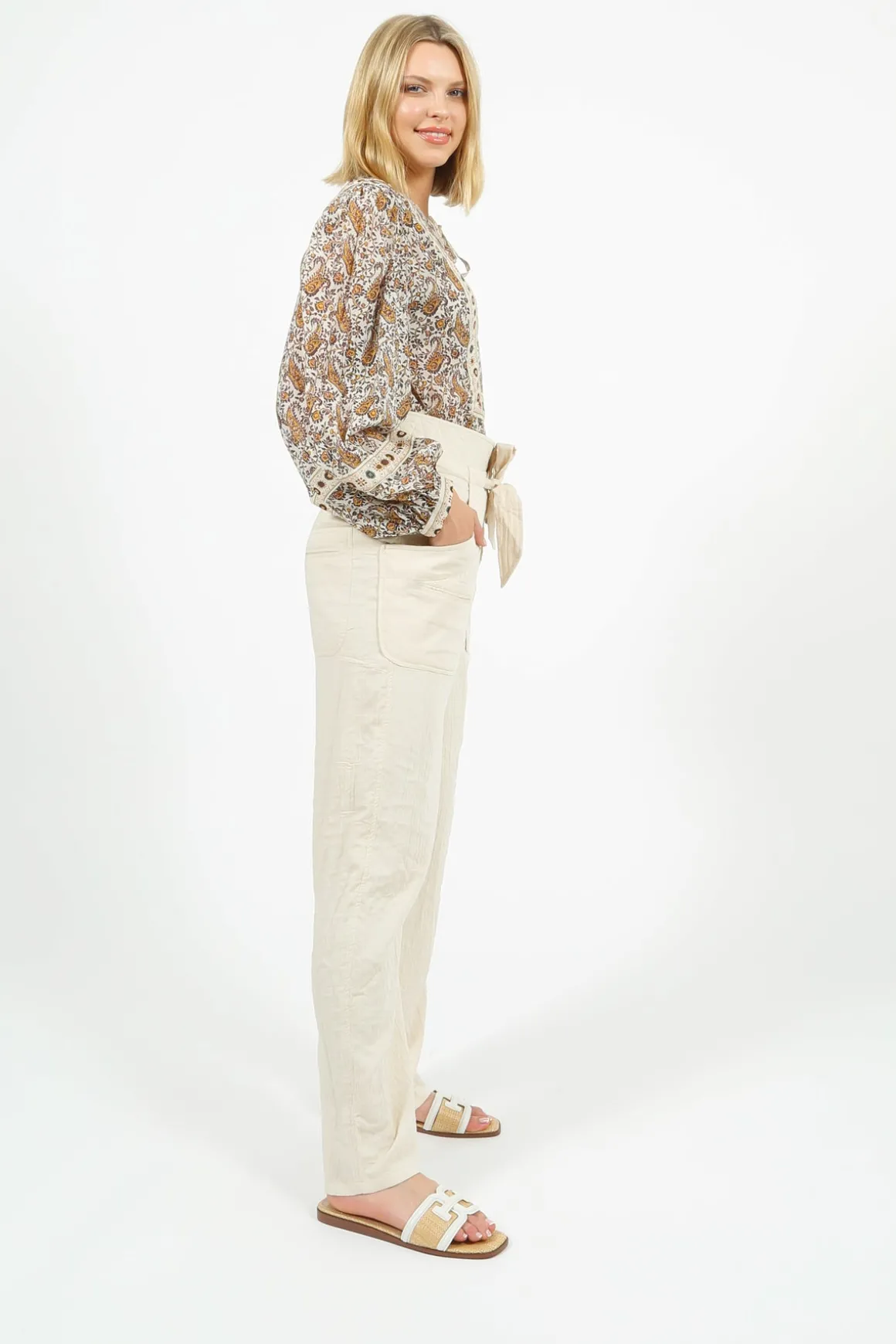 Indulge in effortless elegance with the IM Gayle Blouse in Ecru. Crafted from printed and gathered cotton voile, this blouse features a round neckline with string, a front slit, and gathered front and shoulders. With long gathered sleeves, tapered buttoned cuffs, and a loose fit, this blouse is perfect for any occasion.