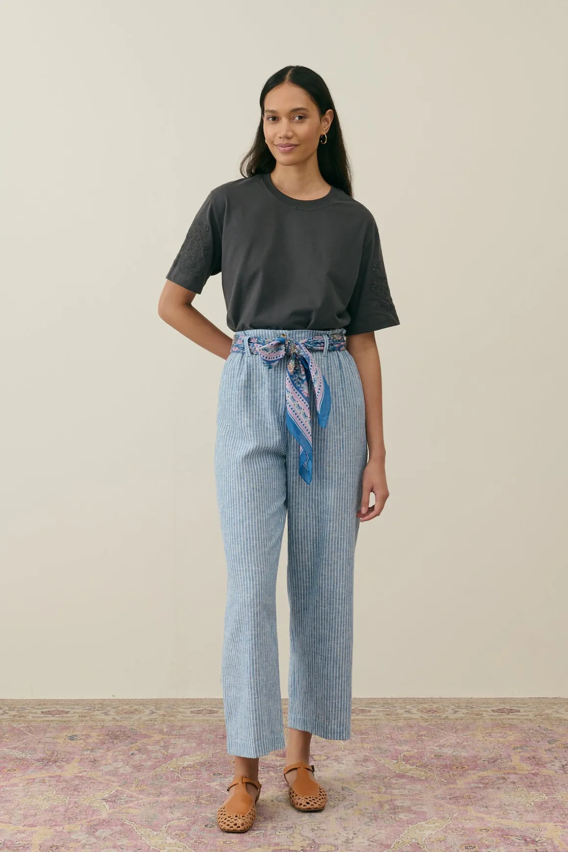 - striped cotton linen pants