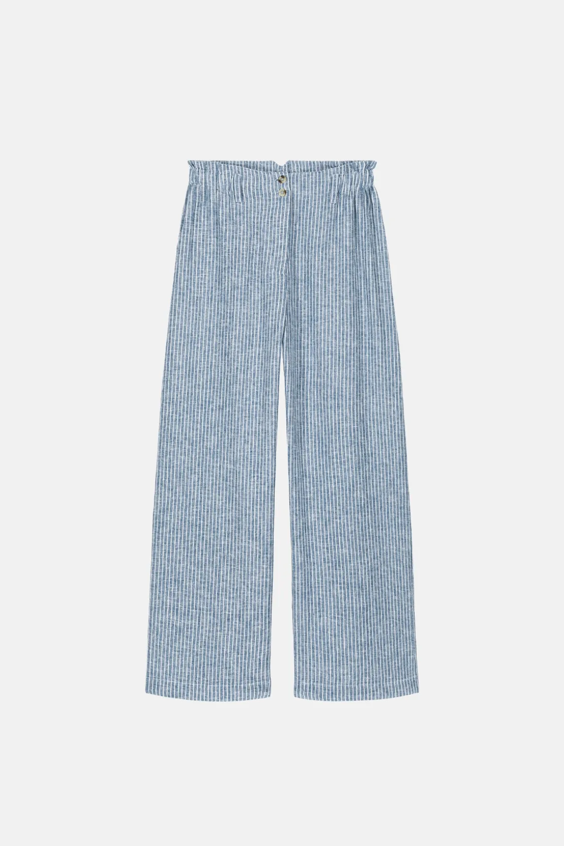 Indulge in the comfort and style of the LM Abuela Trousers in Blue Onda Stripes. Made of a luxurious 55% linen and 45% cotton blend, these striped pants are perfect for any occasion. The elasticized waist with belt loops, zipper and double button fastening, and back welt pocket provide both functionality and fashion. Wash with ease on a delicate cycle at 30 degrees. Elevate your wardrobe with these versatile and chic trousers!