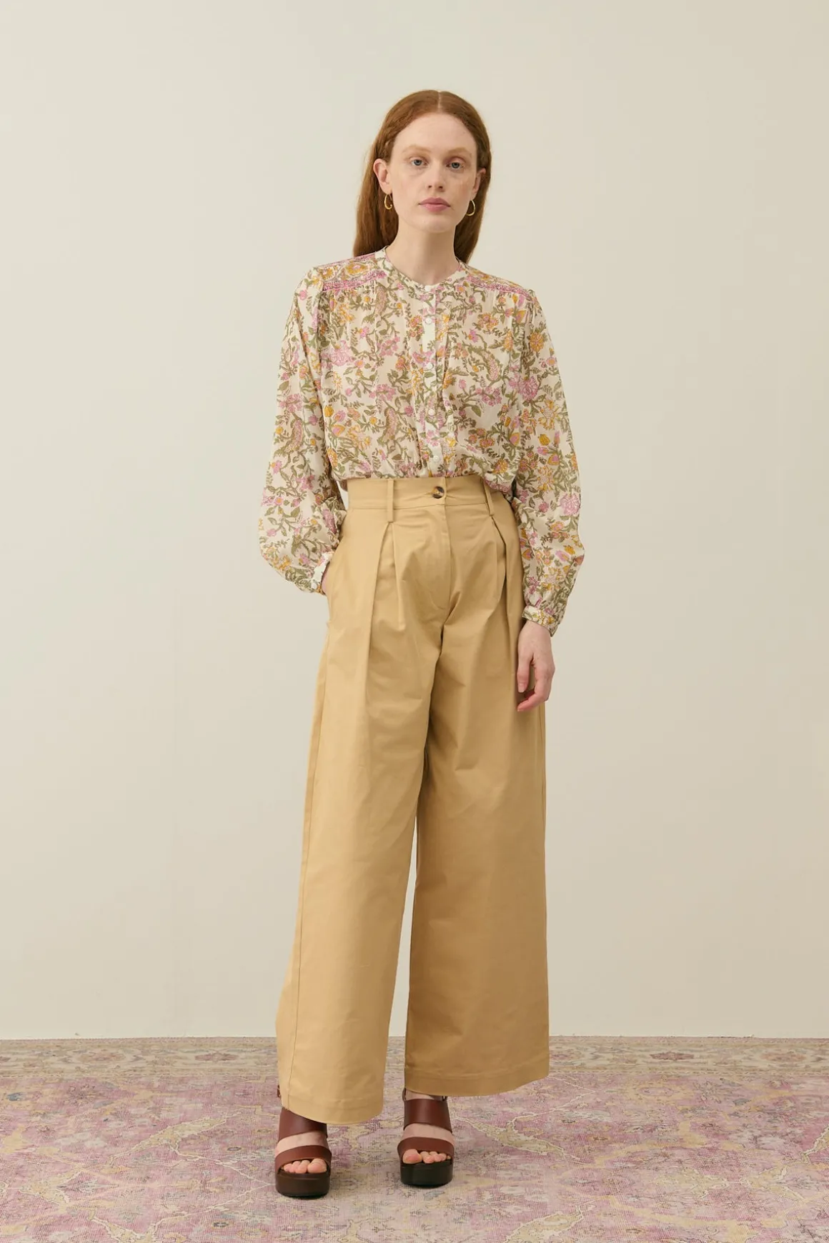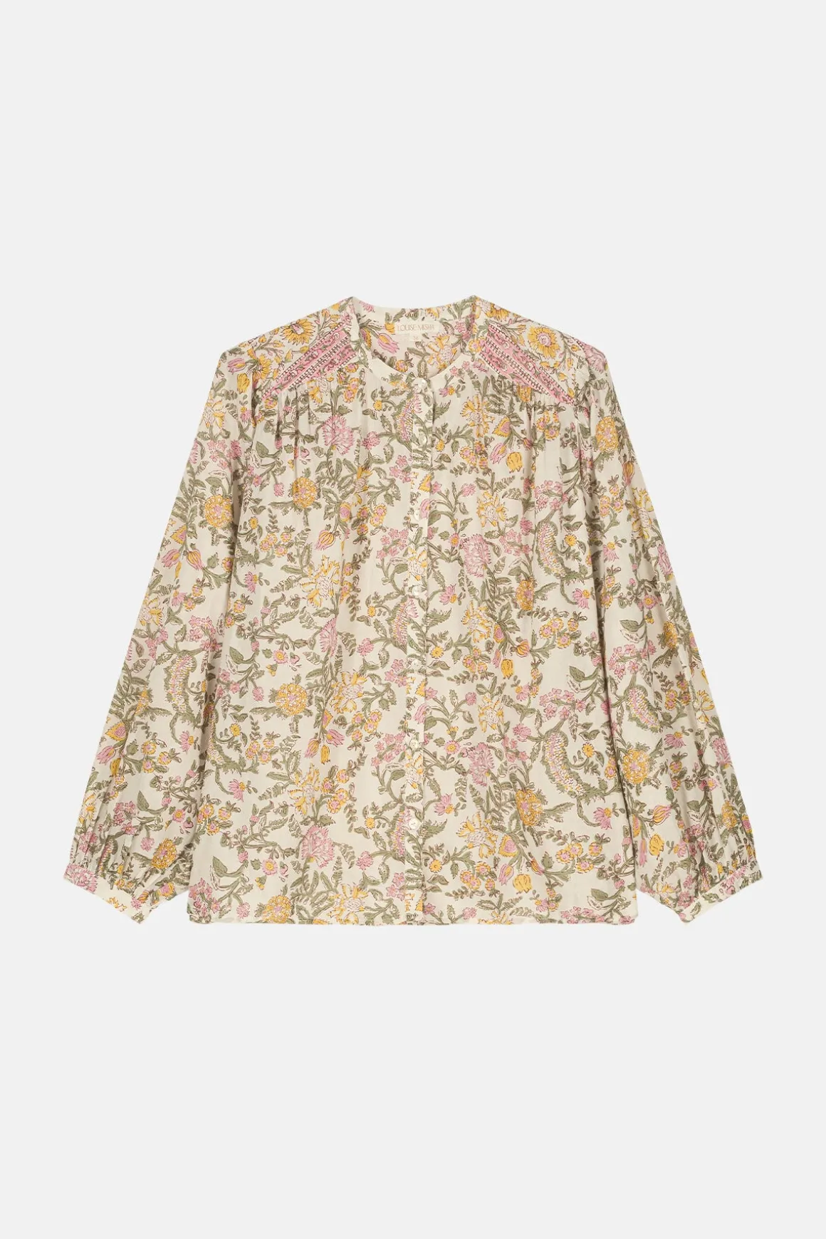 Meet the Louise Misha Jeanne Shirt, a bohemian-inspired piece designed for warmer days. Made from soft, breathable cotton, this lightweight shirt features an off-white base adorned with a delicate floral print. It’s designed with a round neckline and a button-down front for a relaxed, effortless look.