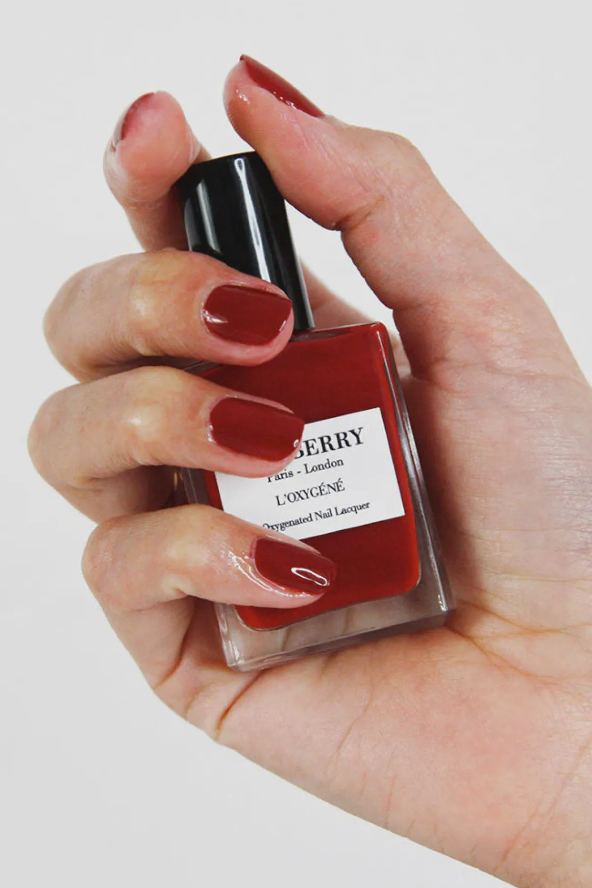 - Apply one thin coat of your chosen Nailberry polish, using our wide, tapered brush to flawlessly coat your nail from base to tip. Work on both hands to allow each layer to dry.