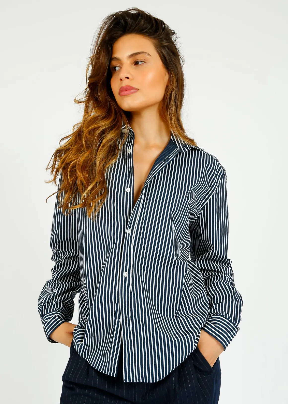 Park’s shirt is cut from smooth, crisp cotton-poplin patterned with pinstripes. Look and feel your best in this stylish, classic fit shirt made from high-quality cotton poplin. Its smooth and crisp texture adds a touch of sophistication, while the pinstripe pattern adds a subtle yet eye-catching detail. Perfect for both formal and casual occasions, this shirt is a versatile and essential addition to your wardrobe.