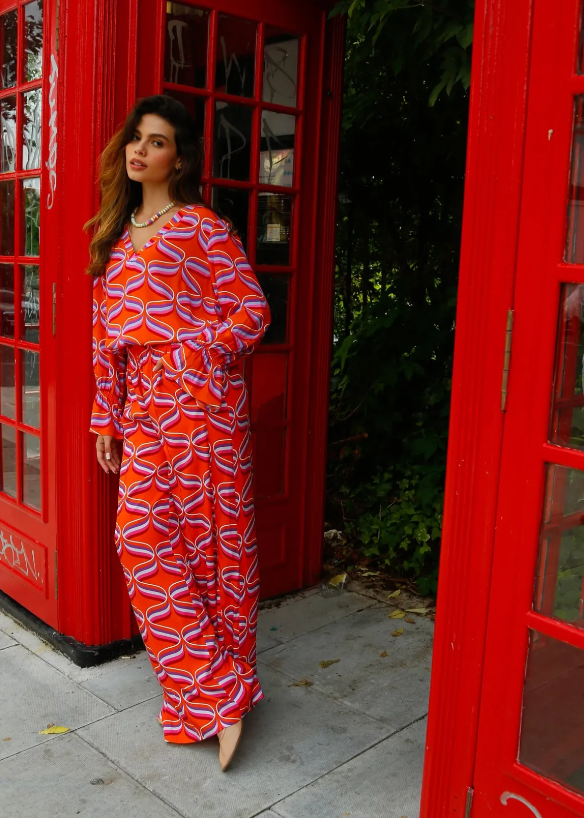 Experience the glamour of ’70s Palm Springs with these striking ribbon printed wide-leg trousers! Perfect for your next getaway, these statement pants are designed with a nod to luxurious pyjama styles. Made of soft, flowing viscose and featuring a comfortable elasticated waistband, they offer both style and comfort. To complete the effortless vacation chic look, pair them with a breezy linen shirt and sandals.