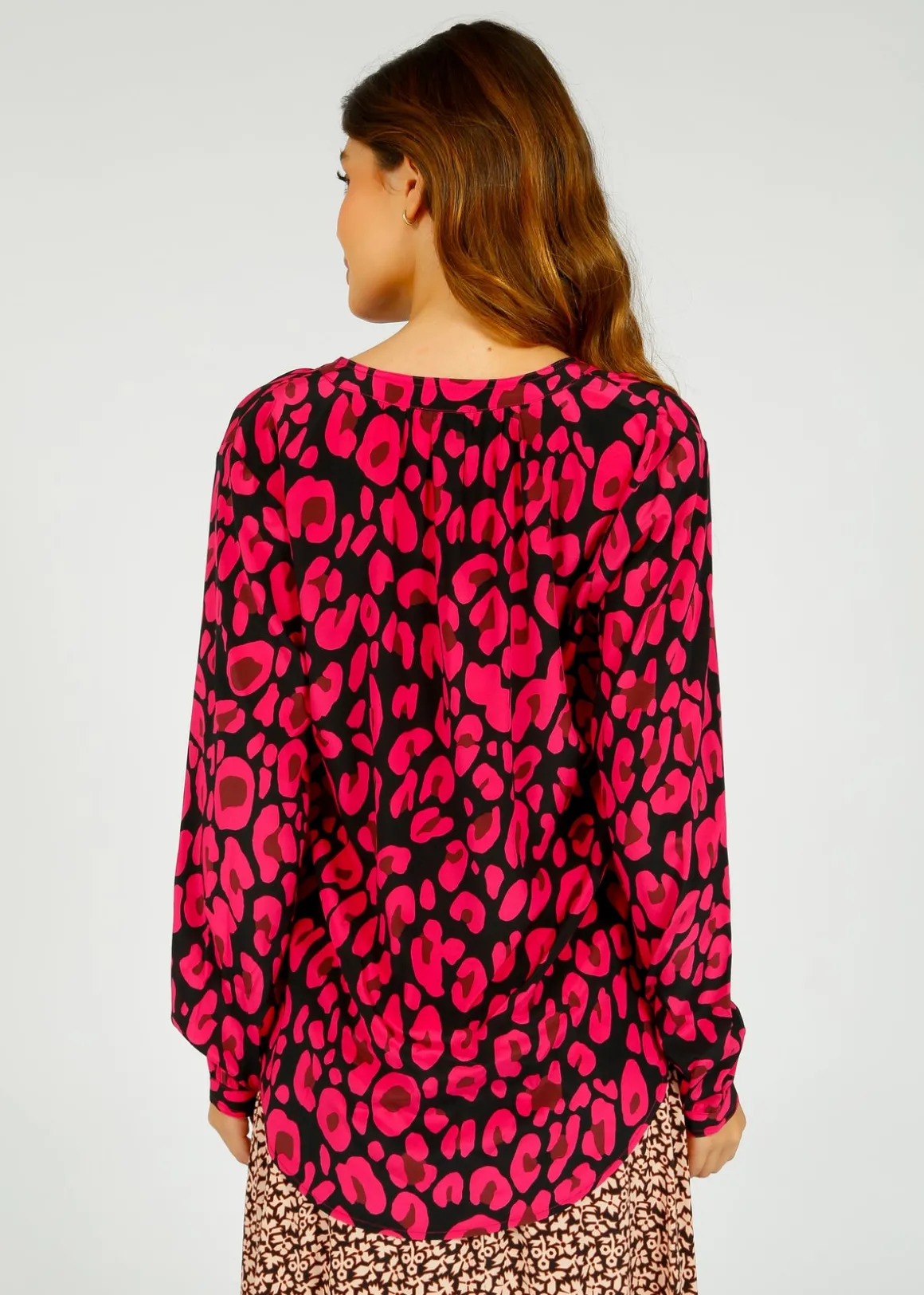 Unleash your wild side with our PPL Sandy Silk Shirt! Made of 100% viscose for ultimate comfort, this shirt features a v-neckline and long sleeves. The high-low hem showcases a bold and playful brown and green leopard print, adding the perfect touch of fierce to any outfit.