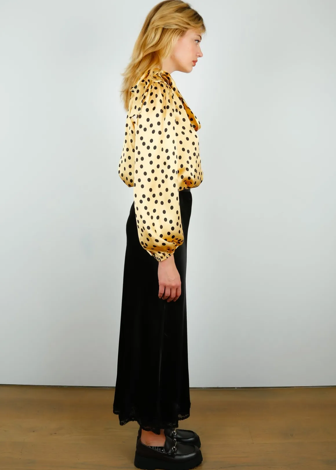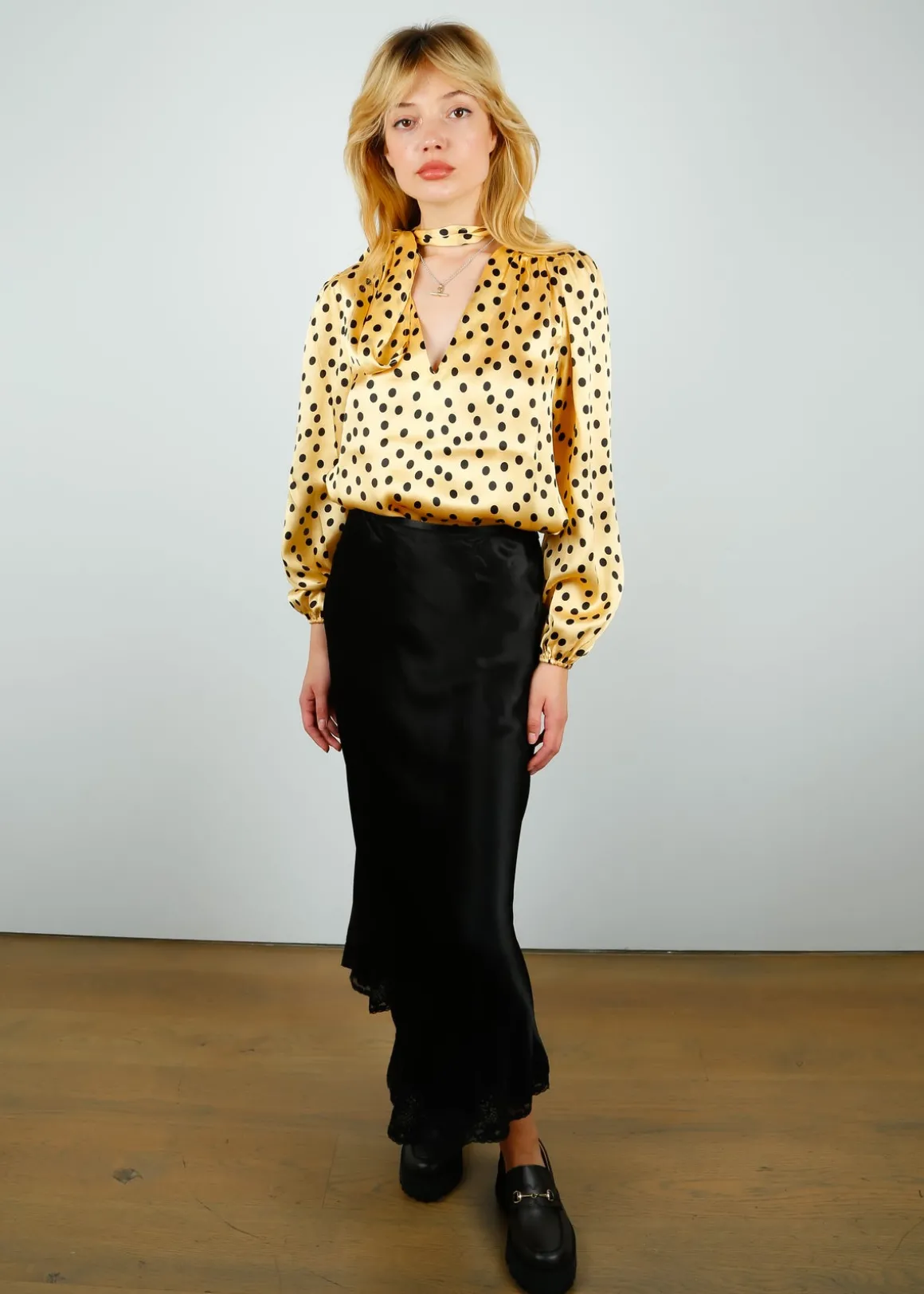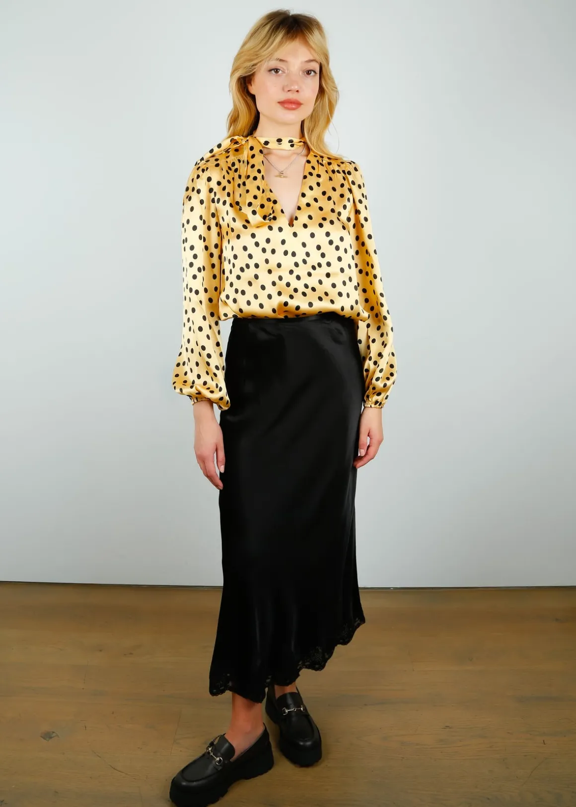 The Crystal midi skirt was a favourite before we did it in black satin but this one shows the Thirties-inspired design at its elegant best. Our signature bias cut flatters the body’s lines without riding up when you walk, while the fabric’s sheen and lace trim makes a look instantly occasion-ready.