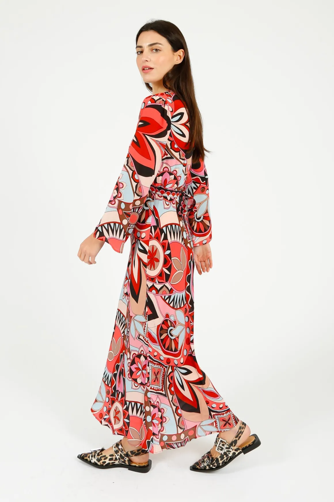 Get ready to turn heads with the RIXO Tania Dress! Made from 100% silk, this dress features a vibrant 60’s swirl red print with hints of blue and emerald floral. The V-neckline, long slightly flared sleeves, and back tie detail add a touch of elegance to this eye-catching piece. Perfect for any special occasion, this dress will leave you feeling confident and stylish!