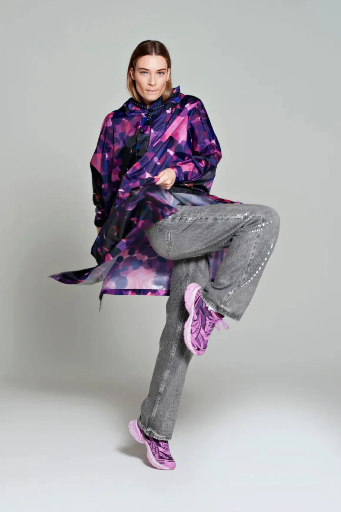 “Those flashing lights….they come from everywhere.” The City Lights rain poncho features an aesthetic Bokeh blur effect of a vibrant cityscape at night. Orbs of light; black, blues, violet and pinky hues seem to cause a glare. The City Lights rain poncho comes from everywhere.