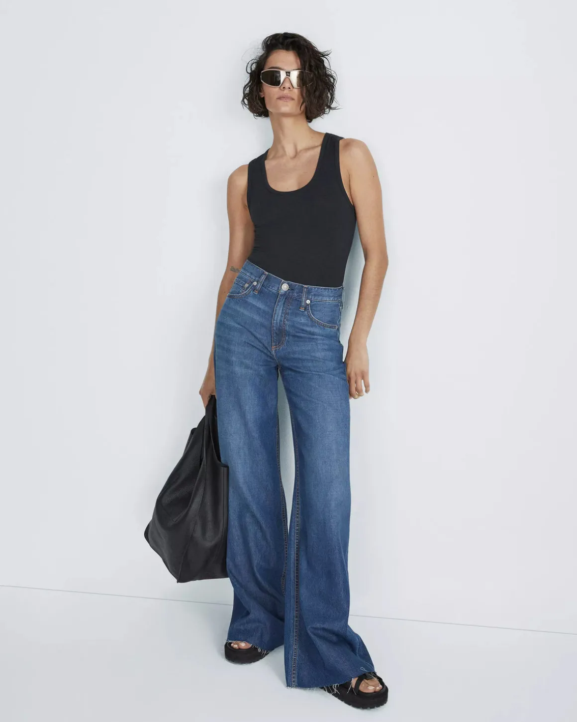 Rag u0026amp; Bone’s widest jeans yet. This high-rise wide-leg style elongates all shapes and is crafted from Featherweight denim – our ultra-light, non-stretch denim crafted with Tencel for supreme softness. Available in Otto, a medium indigo