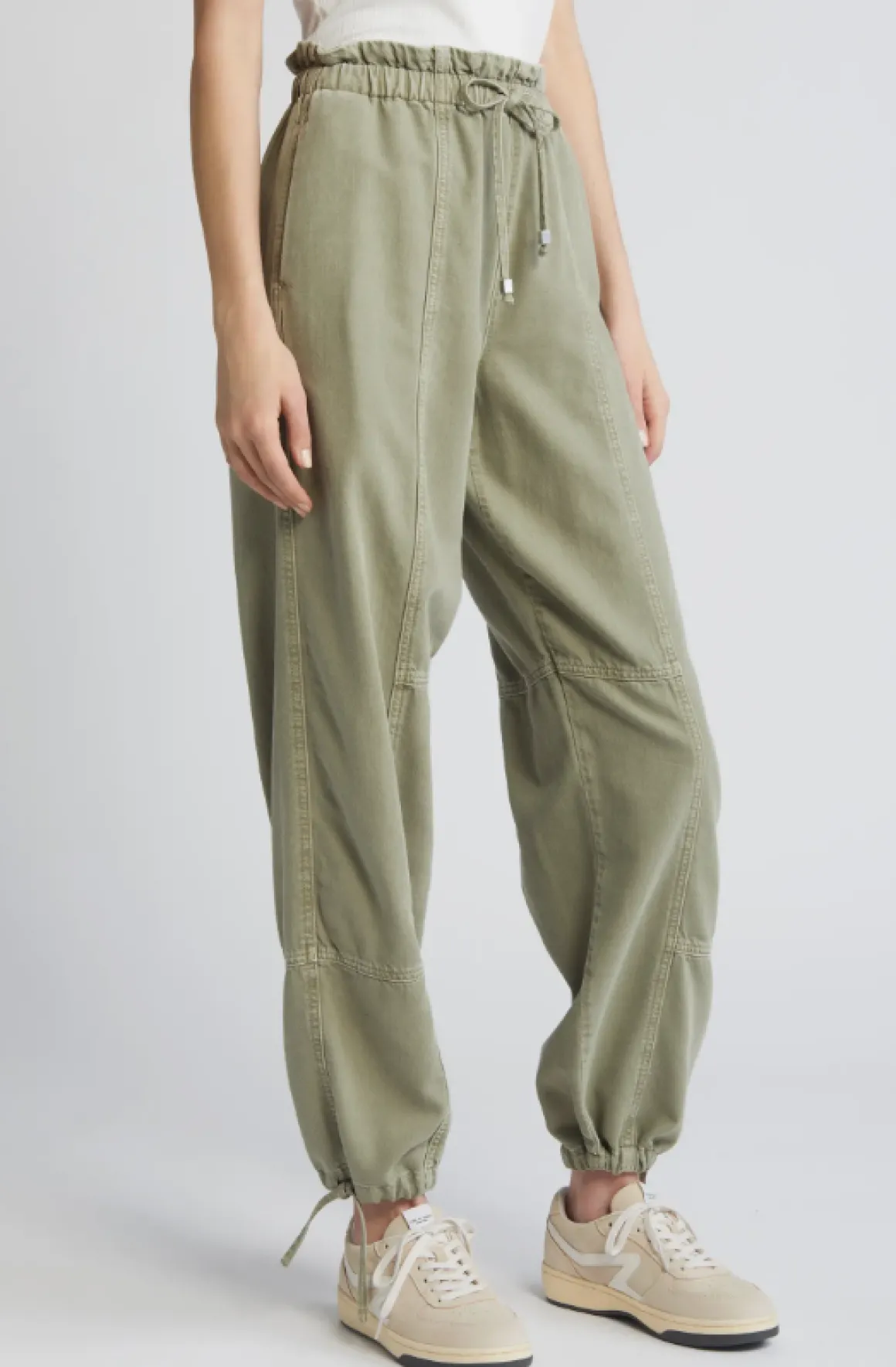 Inspire fashion and functionality with lightweight pants featuring a trendy ruffled paperbag waist, adjustable drawstring cuffs, and convenient pockets. Elevate your style game with this must-have item!