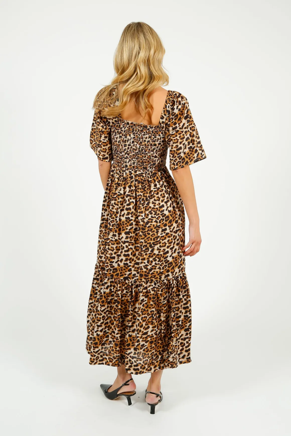 Discover effortless style with our SLF Dora Leopard Dress! This stunning ankle length dress features a lightweight smock style in a fierce leopard print. The square neckline and shirred bodice create a relaxed fit, while the elasticated short sleeves add a touch of femininity. Lined for a fuller, floaty feel, this dress is perfect for any occasion. Embrace your wild side and add this must-have piece to your wardrobe today!
