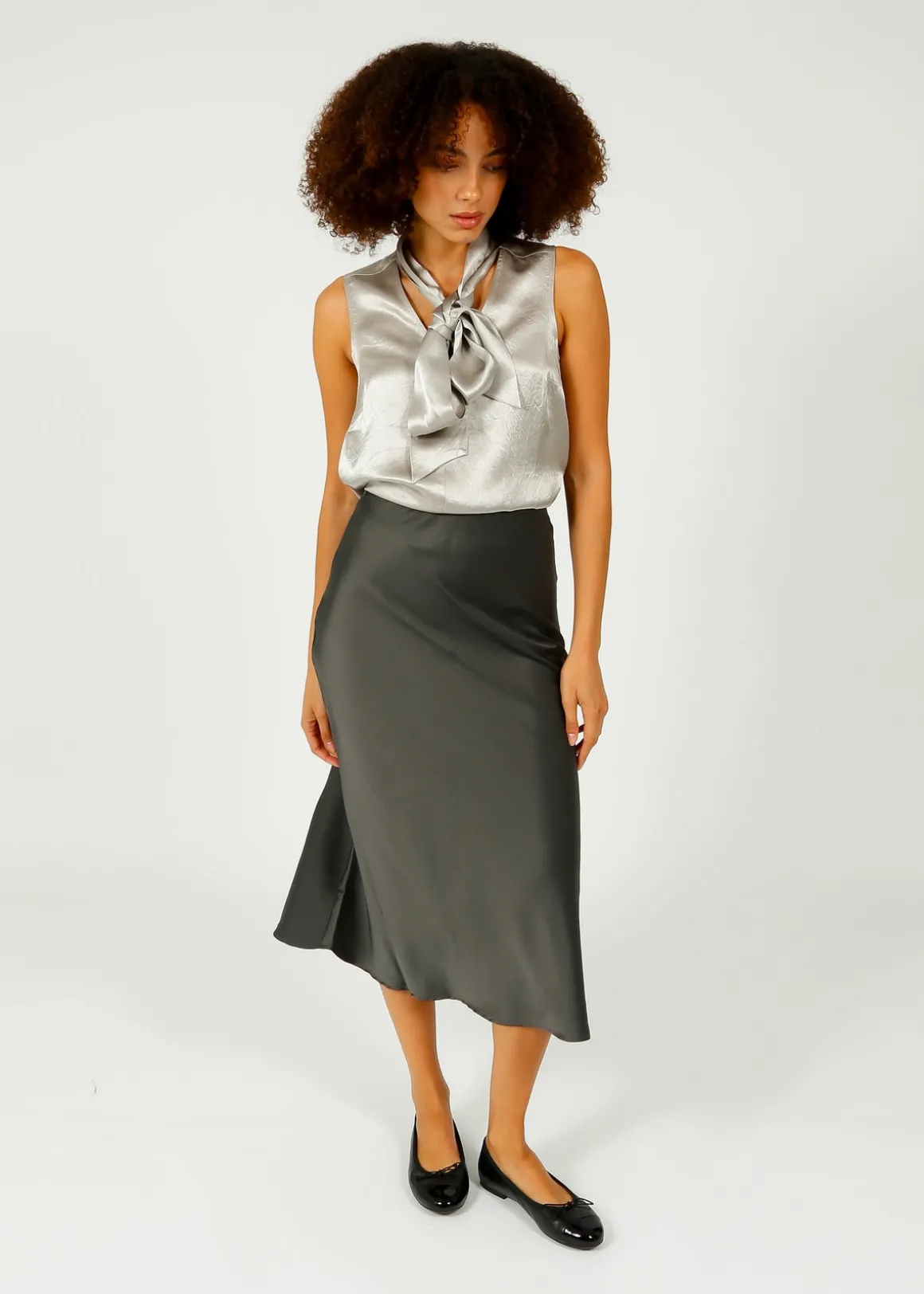 Indulge in the luxurious satin of this midi skirt for endless styling possibilities, perfect for any occasion – from casual to formal.