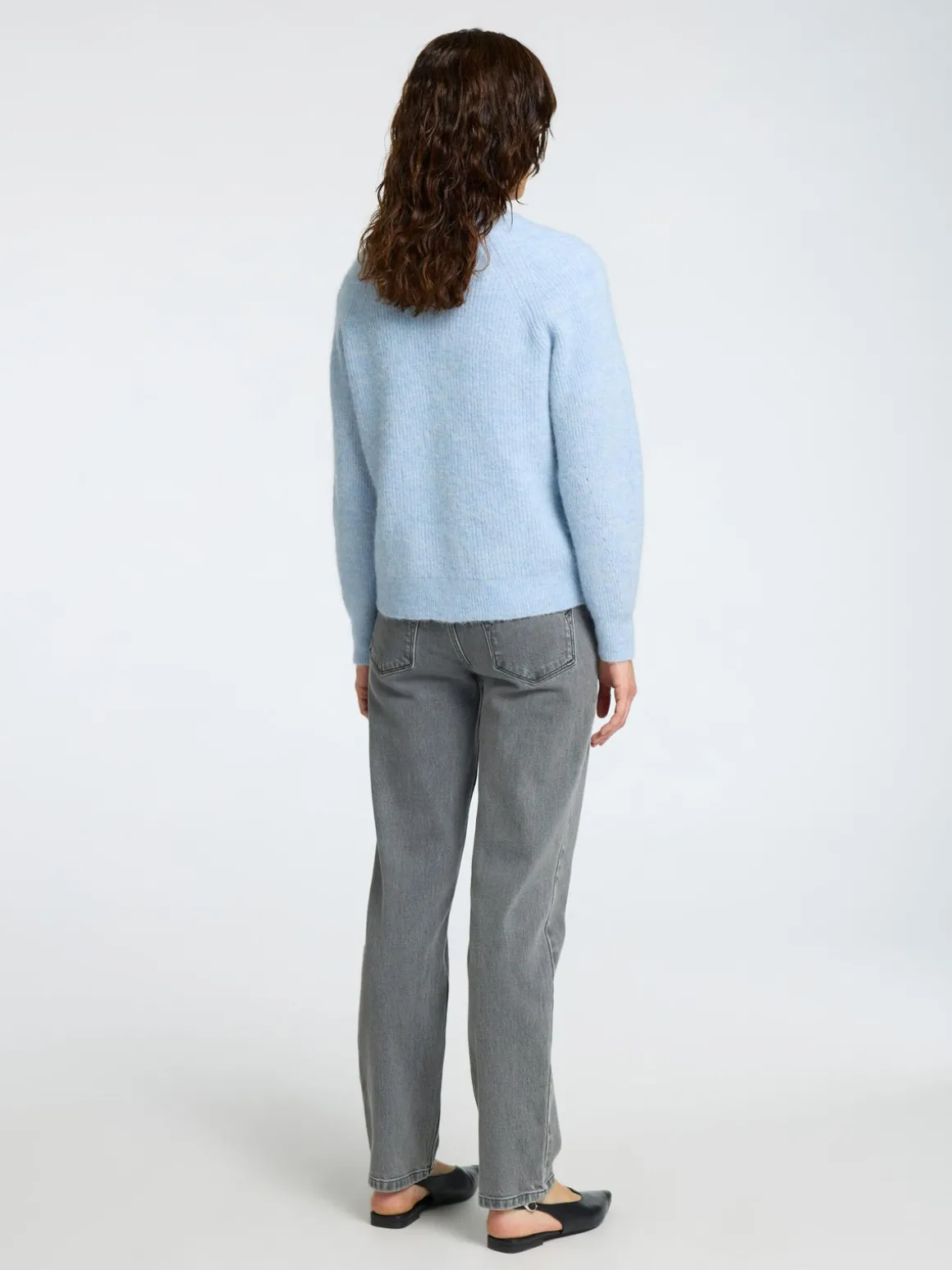 What’s better than throwing on a cosy cardigan on a cold day? This cardigan is made from a soft alpaca-wool blend with a bit of stretch for extra comfort. The long raglan sleeves have drop-stitch details and end in fitted ribbed cuffs. We would style it with light-wash denim or a leather mini skirt.