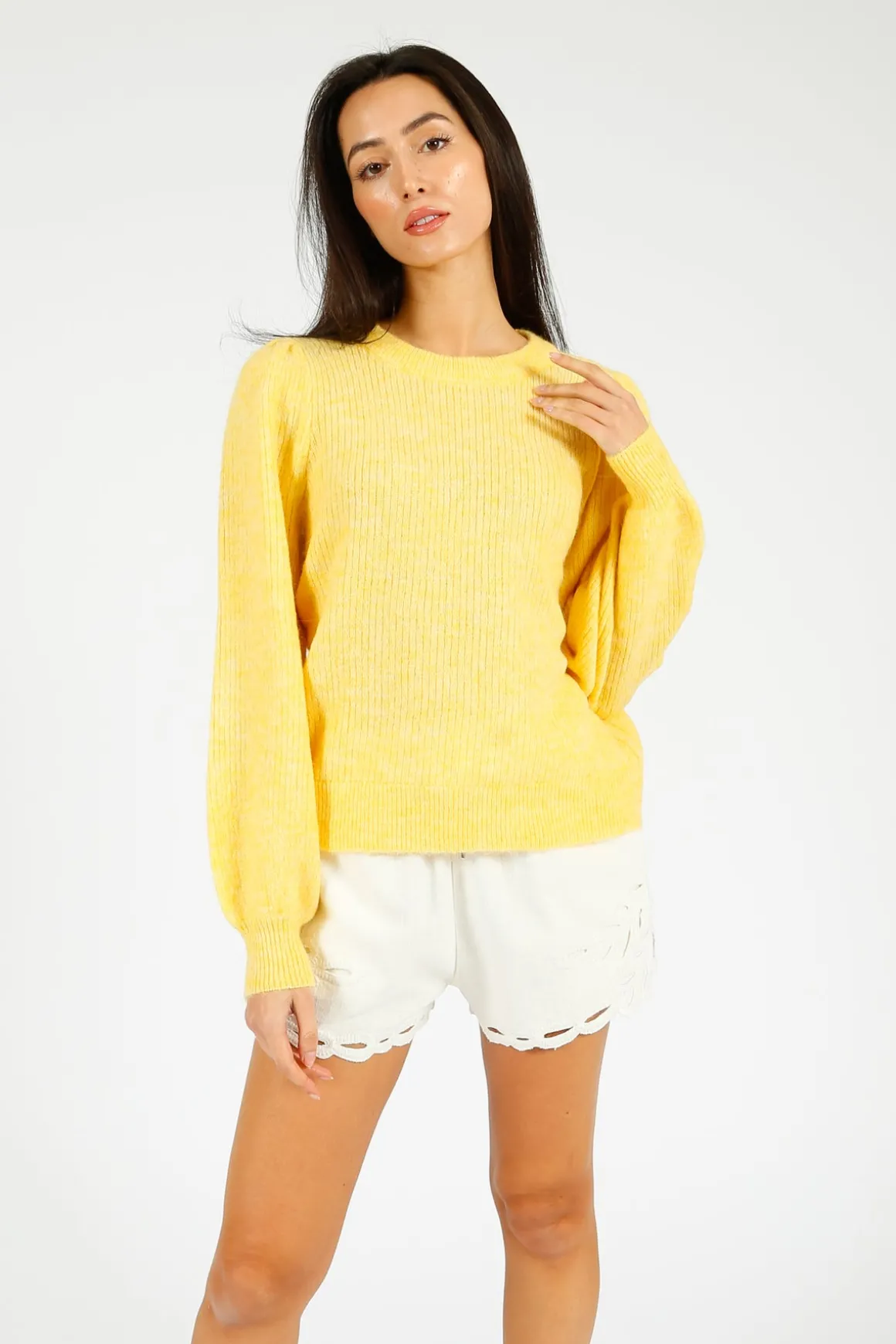 - Long sleeves, round neckline